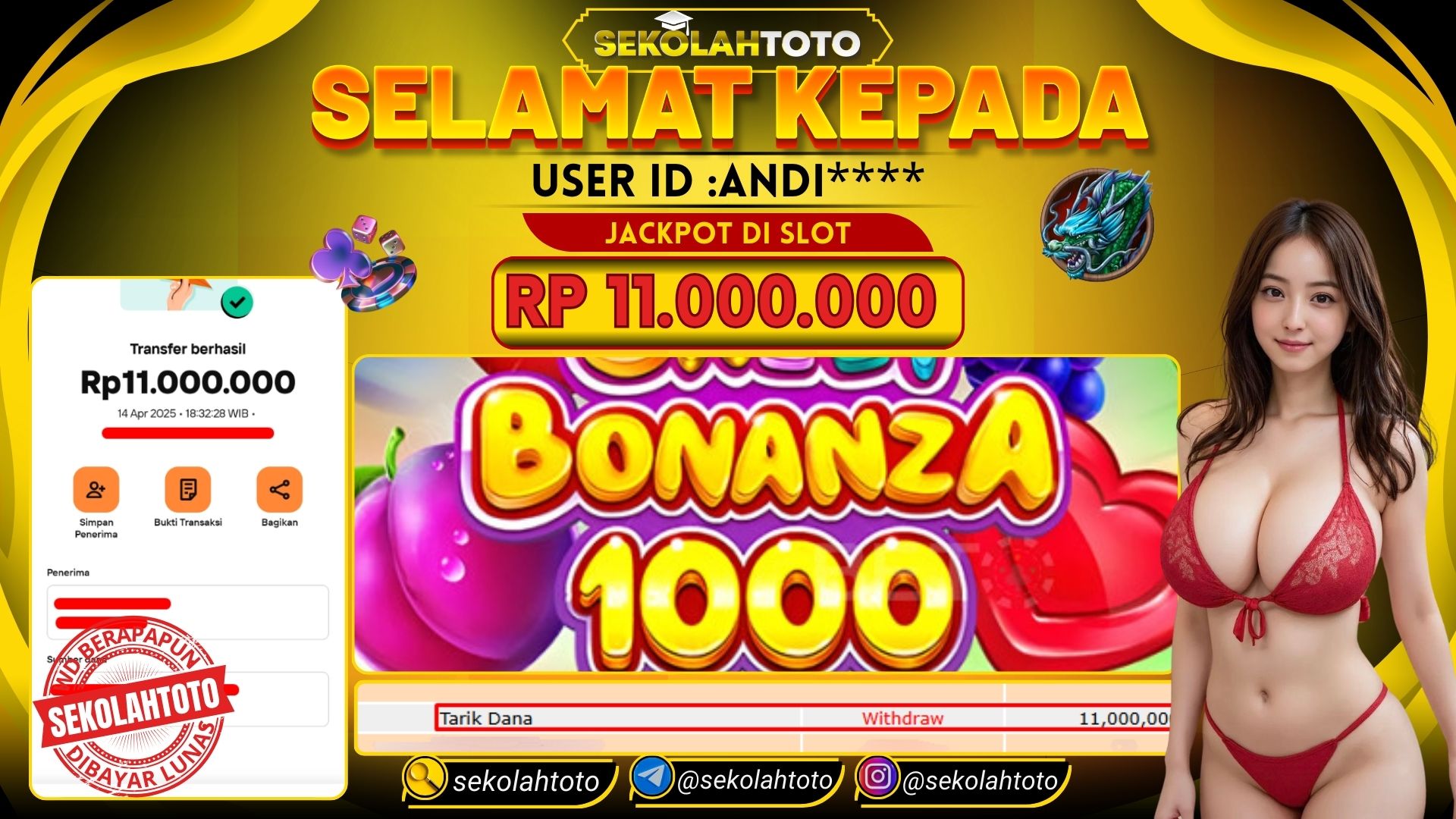 BUKTI PEMBAYAR JACKPOT PRAGMATIC PLAY 14 April 2025 Posted by Sekolah Toto BONANZA 1000 SENIN, 14 APRIL 2025 RP. 11,000,000,- Selamat Kepada Pemenang. Salam JP, Sekolahtoto Updated: 14 April 2025 at 19:45 ◀ Prediksi Togel Toto Macau Hari Ini BUKTI PEMBAYAR JACKPOT PRAGMATIC PLAY ▶