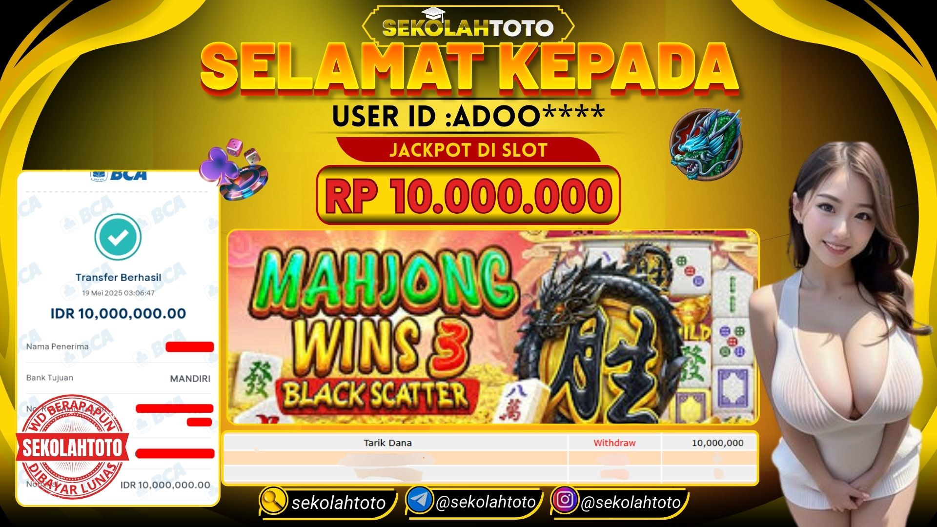 BUKTI PEMBAYAR JACKPOT PRAGMATIC PLAY 19 Mei 2025 Posted by Sekolah Toto MAHJONG WINS 3 SENIN, 19 MEI 2025 RP.10,000,000,- Selamat Kepada Pemenang. Salam JP Updated: 19 Mei 2025 at 03:22 ◀ Prediksi Togel Toto Macau Hari Ini BUKTI PEMBAYAR JACKPOT PRAGMATIC PLAY ▶