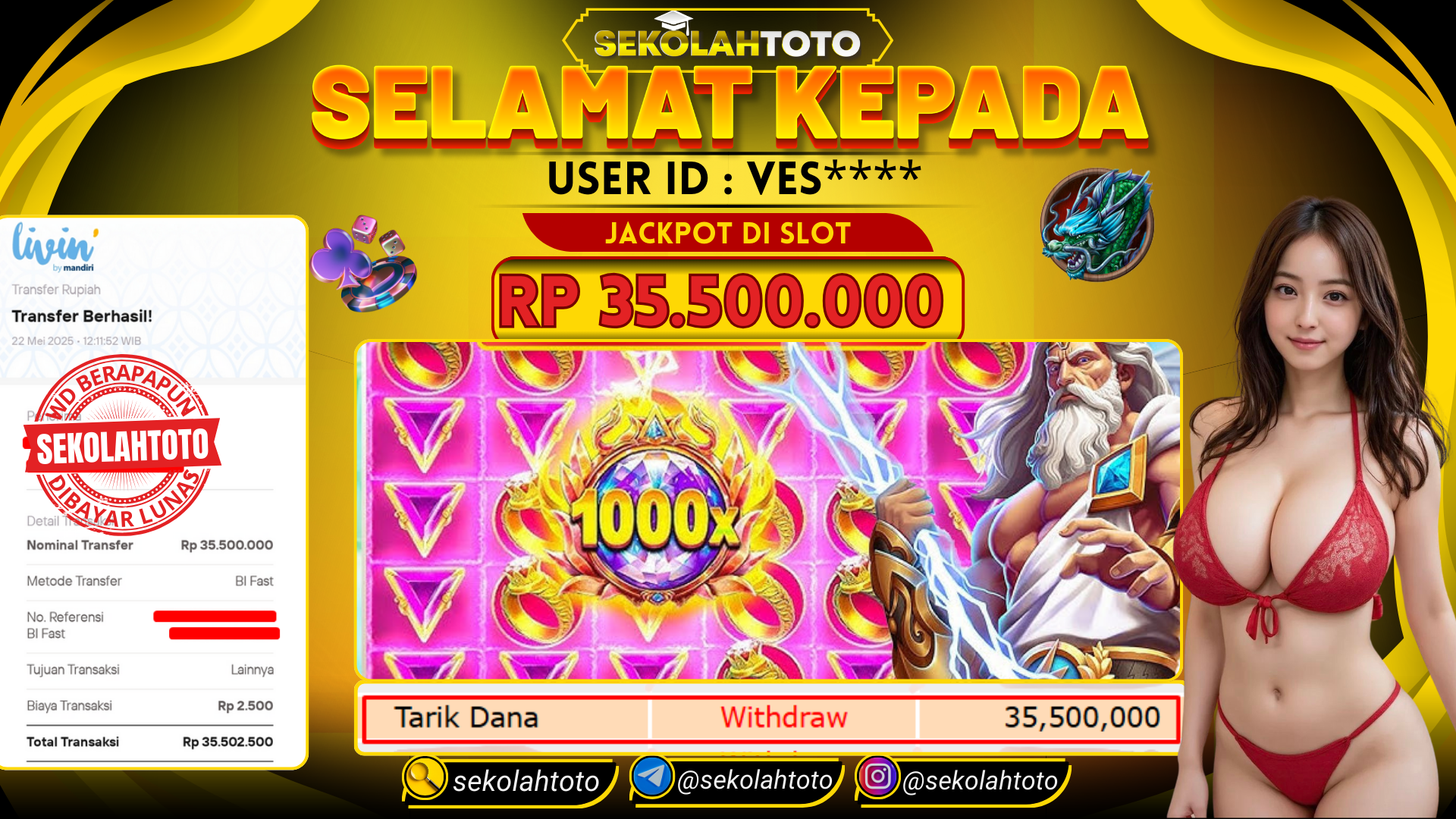 BUKTI PEMBAYAR JACKPOT PRAGMATIC PLAY 22 Mei 2025 Posted by Sekolah Toto GATES OF OLYMPUS 1000 KAMIS , 22 MEI 2025 RP 35,500,000,- Selamat Kepada Pemenang. Salam JP Updated: 22 Mei 2025 at 19:12 ◀ BUKTI PEMBAYAR JACKPOT PRAGMATIC PLAY Prediksi Togel Bullseye Pools Hari Ini ▶