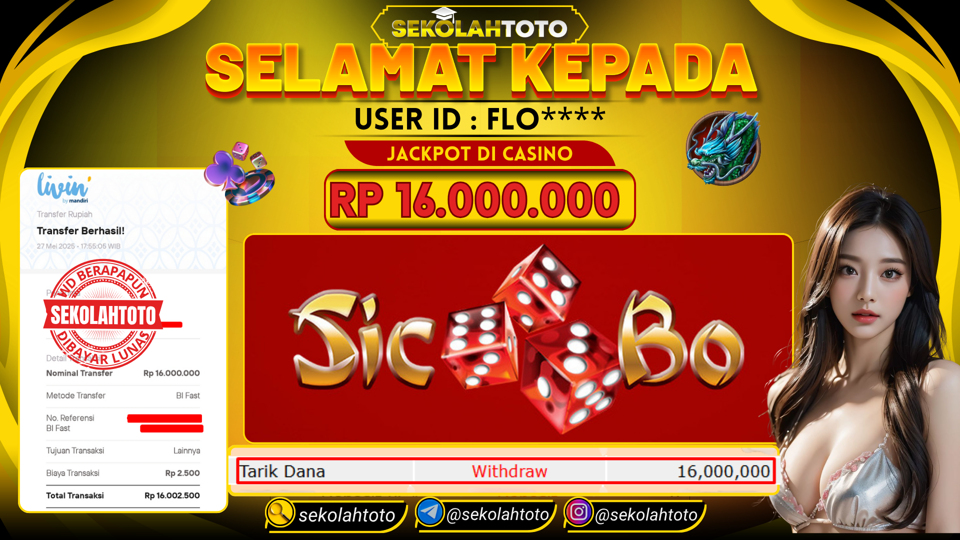BUKTI PEMBAYARAN JACKPOT LIVE CASINO 27 Mei 2025 Posted by Sekolah Toto SICBO DICE SELASA , 27 MEI 2025 RP 16,000,000,- Selamat Kepada Pemenang. Salam JP Updated: 27 Mei 2025 at 20:04 ◀ BUKTI PEMBAYARAN JACKPOT PRAGMATIC PLAY Prediksi Togel Bullseye Pools Hari Ini ▶