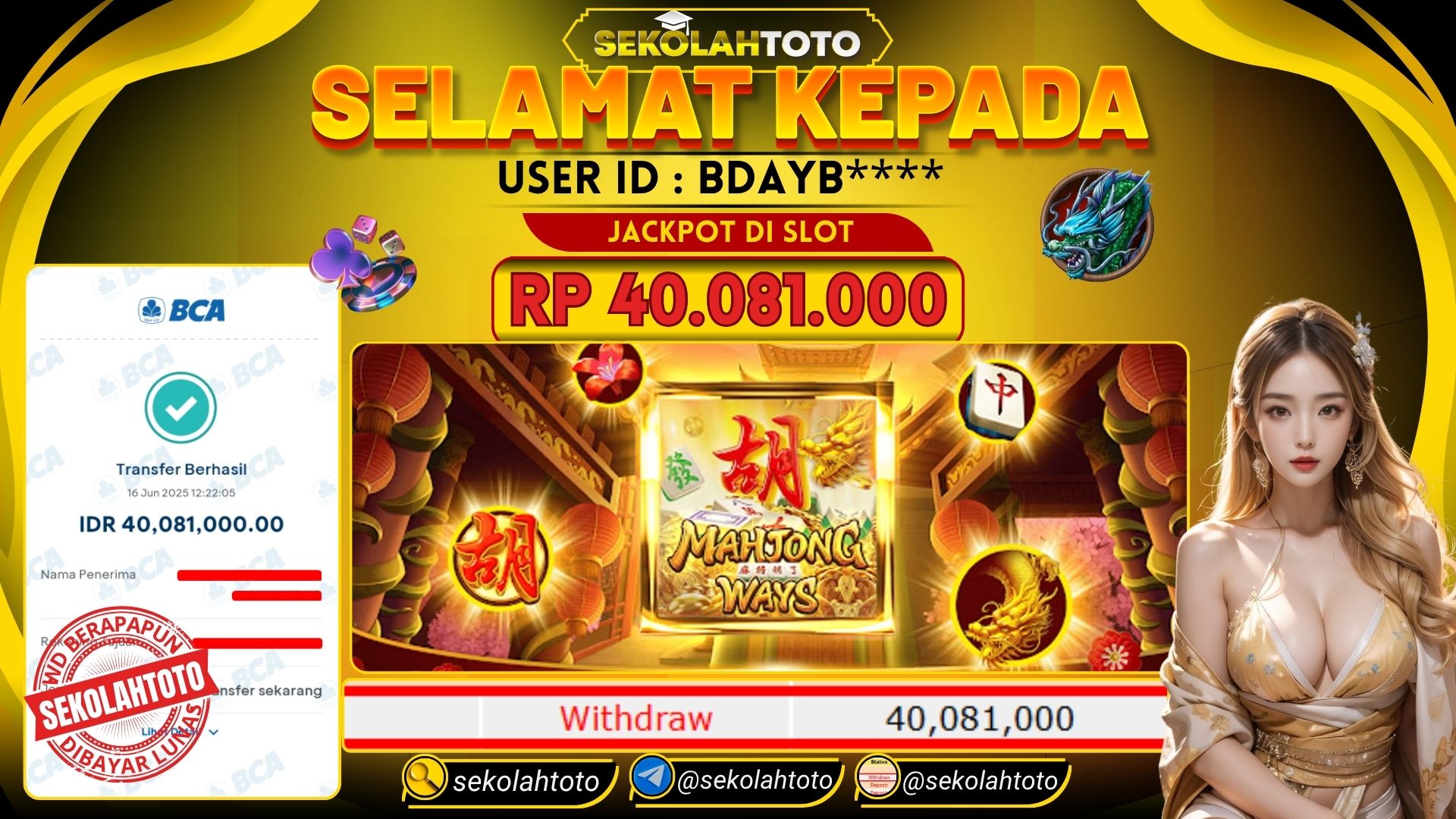 BUKTI PEMBAYARAN JACKPOT PG SOFT 16 Juni 2025 Posted by Sekolah Toto MAHJONG WAYS SENIN, 16 JUNI 2025 RP 40,081,000,- Selamat Kepada Pemenang. Salam JP Updated: 16 Juni 2025 at 13:15 ◀ BUKTI PEMBAYARAN JACKPOT PG SOFT Prediksi Togel Bullseye Pools Hari Ini ▶