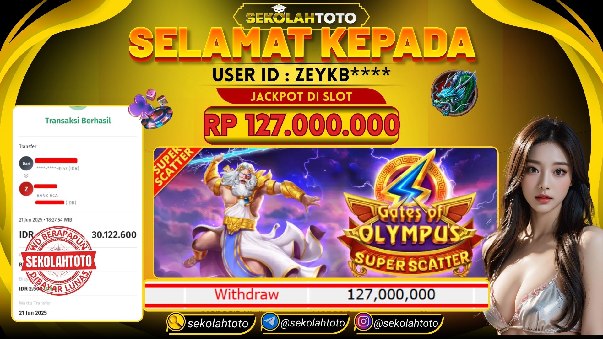 BUKTI PEMBAYARAN JACKPOT PRAGMATIC PLAY 21 Juni 2025 Posted by Sekolah Toto GATES OF OLYMPUS SUPER SCATTER SABTU, 21 JUNI 2025 RP 127,000,000,- Selamat Kepada Pemenang. Salam JP Updated: 21 Juni 2025 at 21:30 ◀ Prediksi Togel Toto Macau Hari Ini BUKTI PEMBAYARAN JACKPOT PRAGMATIC PLAY ▶