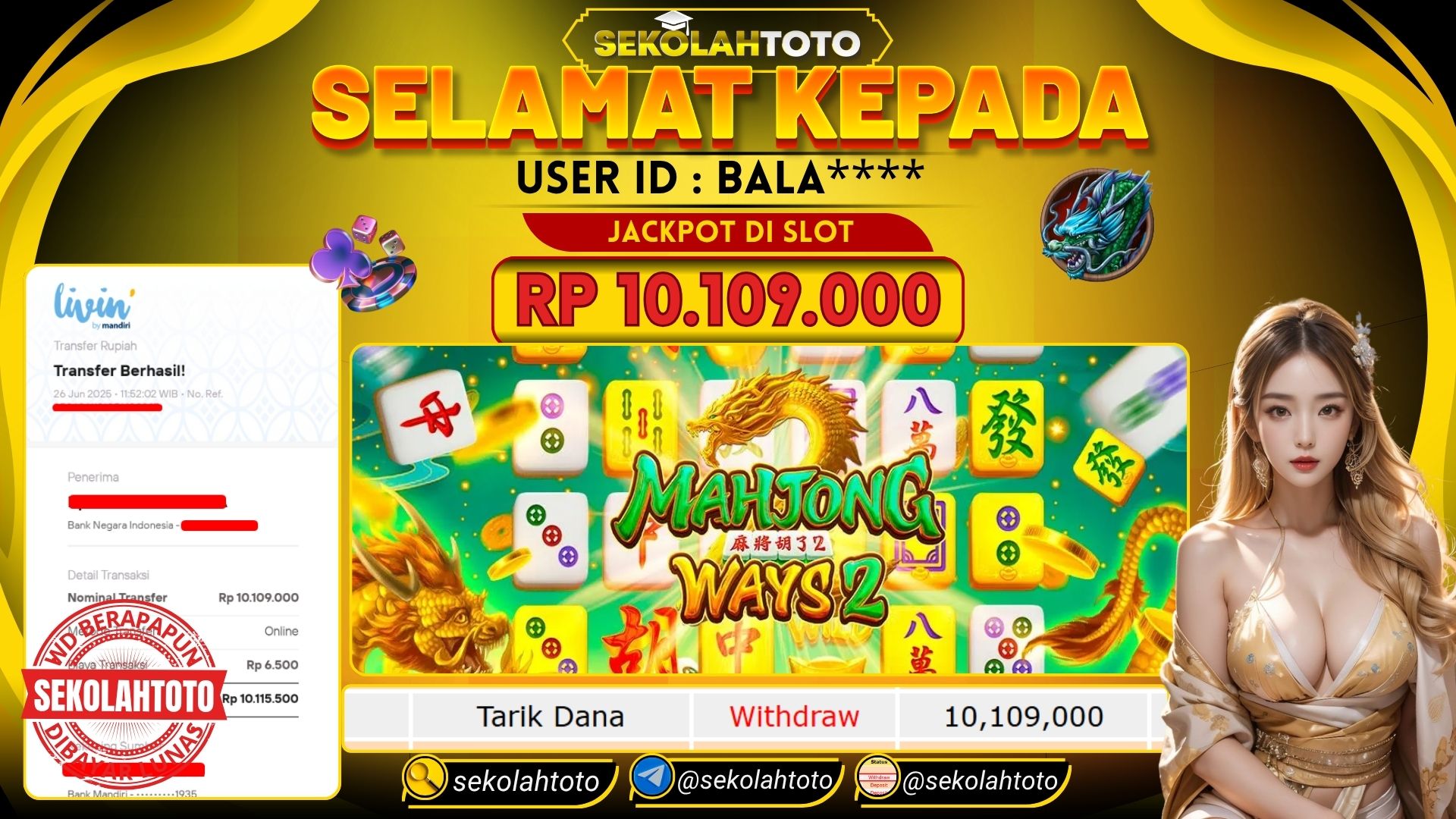 BUKTI PEMBAYARAN JACKPOT PG SOFT 26 Juni 2025 Posted by Sekolah Toto MAHJONG WAYS 2 KAMIS, 26 JUNI 2025 RP 10,109,000,- Selamat Kepada Pemenang. Salam JP Updated: 26 Juni 2025 at 19:22 ◀ BUKTI PEMBAYARAN JACKPOT PG SOFT BUKTI PEMBAYARAN JACKPOT PRAGMATIC PLAY ▶