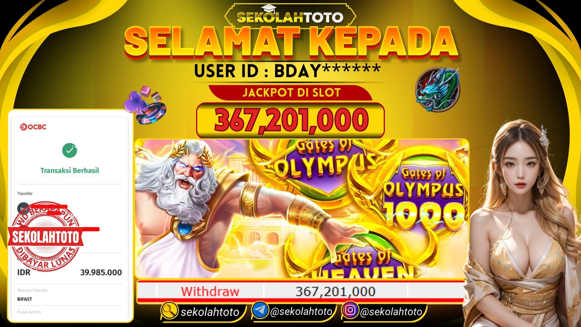 BUKTI PEMBAYARAN JACKPOT PRAGMATIC PLAY 5 Juli 2025 Posted by Sekolah Toto GATES OF OLYMPUS 1000 SABTU , 5 JULI 2025 RP 367,201,000 Selamat Kepada Pemenang. Salam JP Updated: 5 Juli 2025 at 06:42 ◀ Prediksi Togel Toto Macau Hari Ini BUKTI PEMBAYARAN JACKPOT PRAGMATIC PLAY ▶