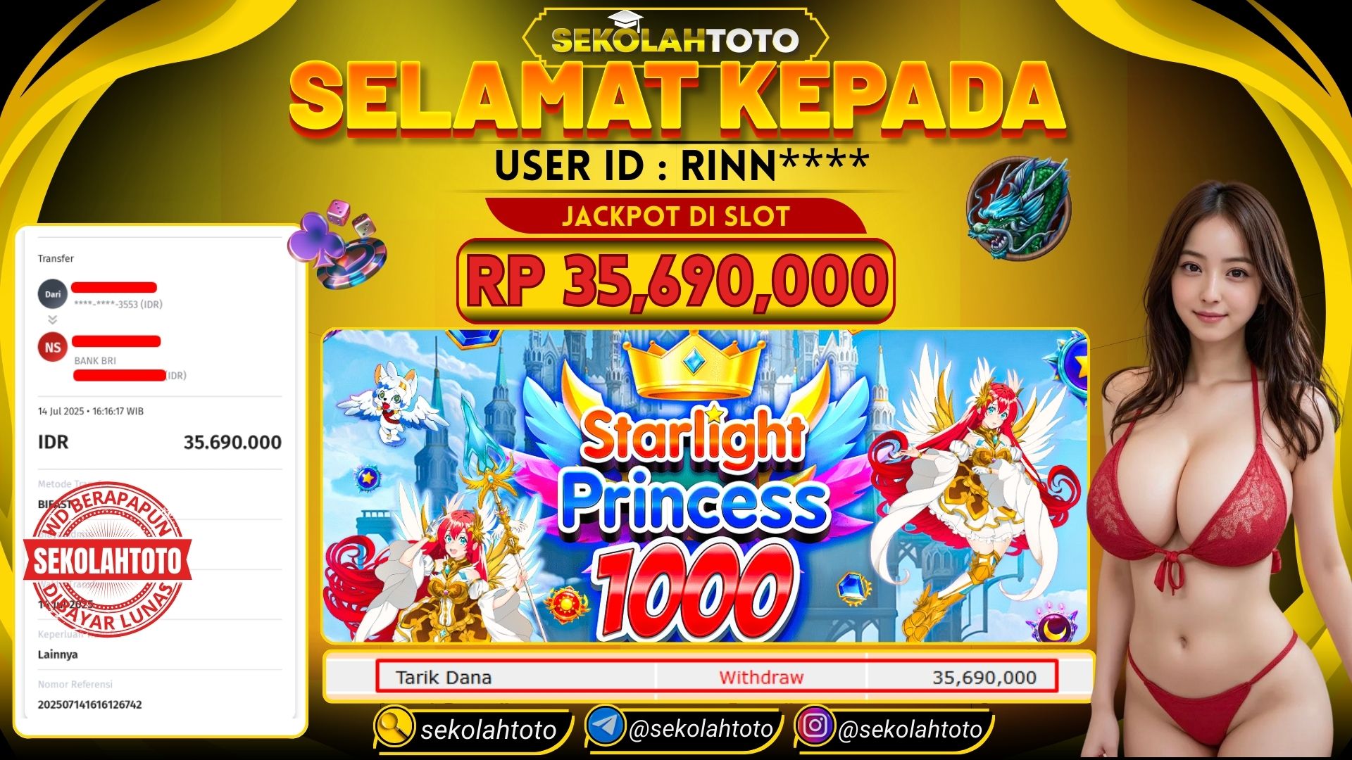 BUKTI PEMBAYARAN JACKPOT PRAGMATIC PLAY 14 Juli 2025 Posted by Sekolah Toto STARLIGHT PRINCESS 1000 SENIN, 14 JULI 2025 RP 35,690,000,- Selamat Kepada Pemenang. Salam JP Updated: 14 Juli 2025 at 16:24 ◀ BUKTI PEMBAYARAN JACKPOT TOGEL BUKTI PEMBAYARAN JACKPOT PG SOFT ▶