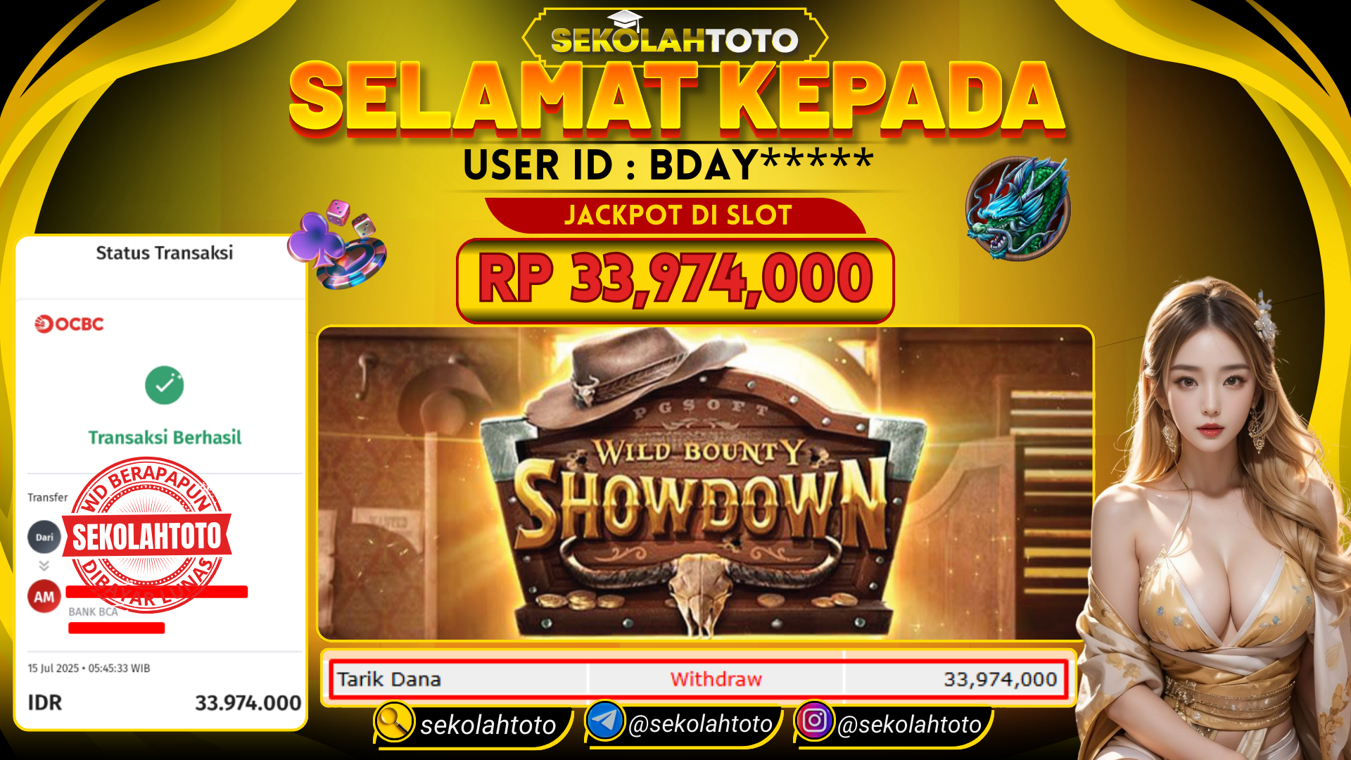 BUKTI PEMBAYARAN JACKPOT PG SOFT 15 Juli 2025 Posted by Sekolah Toto WILD BOUNTY SHOWDOWN SELASA , 15 JULI 2025 RP 33,974,000,- Selamat Kepada Pemenang. Salam JP Updated: 15 Juli 2025 at 07:41 ◀ Prediksi Togel Toto Macau Hari Ini BUKTI PEMBAYARAN JACKPOT PRAGMATIC PLAY ▶