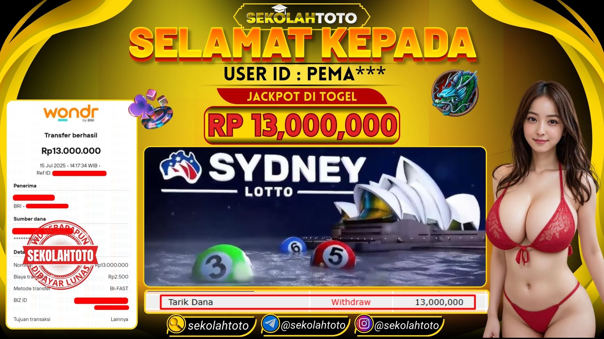 BUKTI PEMBAYARAN JACKPOT TOGEL 15 Juli 2025 Posted by Sekolah Toto SYDNEY LOTTO SELASA , 15 JULIĀ 2025 RP 13,000,000,- Selamat Kepada Pemenang. Salam JP Updated: 15 Juli 2025 at 14:55 ◀ BUKTI PEMBAYARAN JACKPOT PRAGMATIC PLAY Prediksi Togel Bullseye Pools Hari Ini ▶