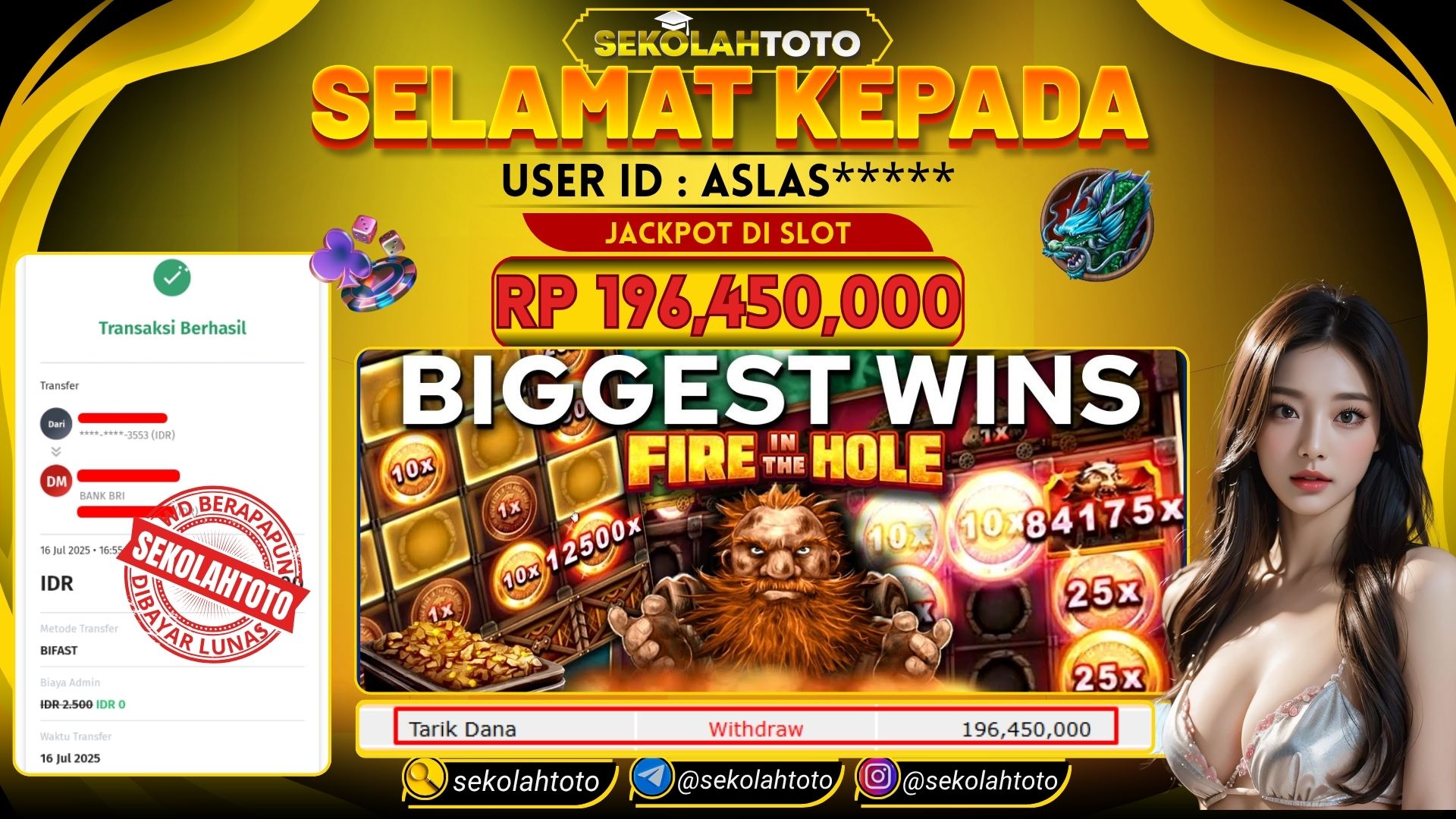 BUKTI PEMBAYARAN JACKPOT NO LIMIT CITY 16 Juli 2025 Posted by Sekolah Toto FIRE IN THE HOLE 3 RABU, 16 JULIĀ 2025 RP 196,450,000,- Selamat Kepada Pemenang. Salam JP Updated: 16 Juli 2025 at 18:31 ◀ BUKTI PEMBAYARAN JACKPOT PG SOFT Prediksi Togel Bullseye Pools Hari Ini ▶