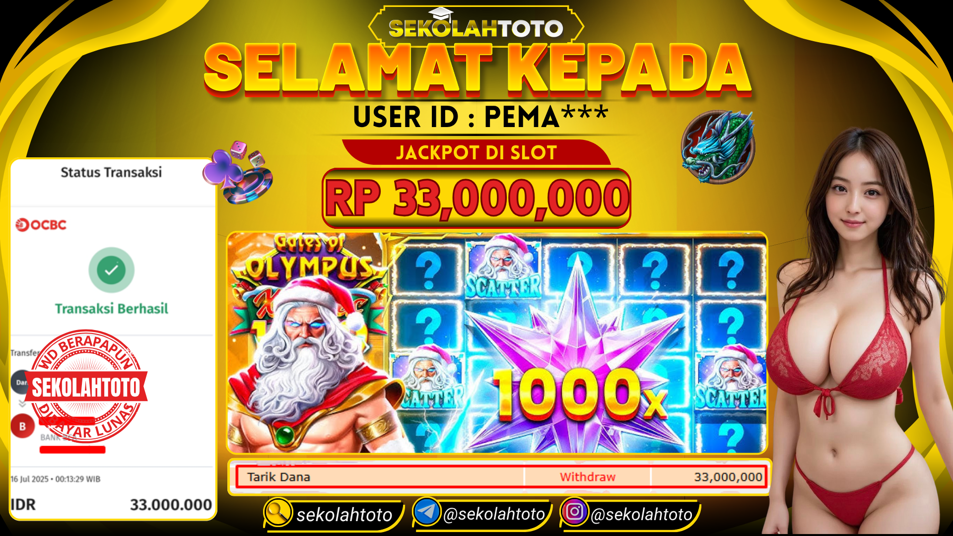 BUKTI PEMBAYARAN JACKPOT PRAGMATIC PLAY 16 Juli 2025 Posted by Sekolah Toto GATES OF OLYMPUS X-MAS 1000 RABU, 16 JULIĀ 2025 RP 33,000,000,- Selamat Kepada Pemenang. Salam JP Updated: 17 Juli 2025 at 03:51 ◀ BUKTI PEMBAYARAN JACKPOT PRAGMATIC PLAY BUKTI PEMBAYARAN JACKPOT PG SOFT ▶