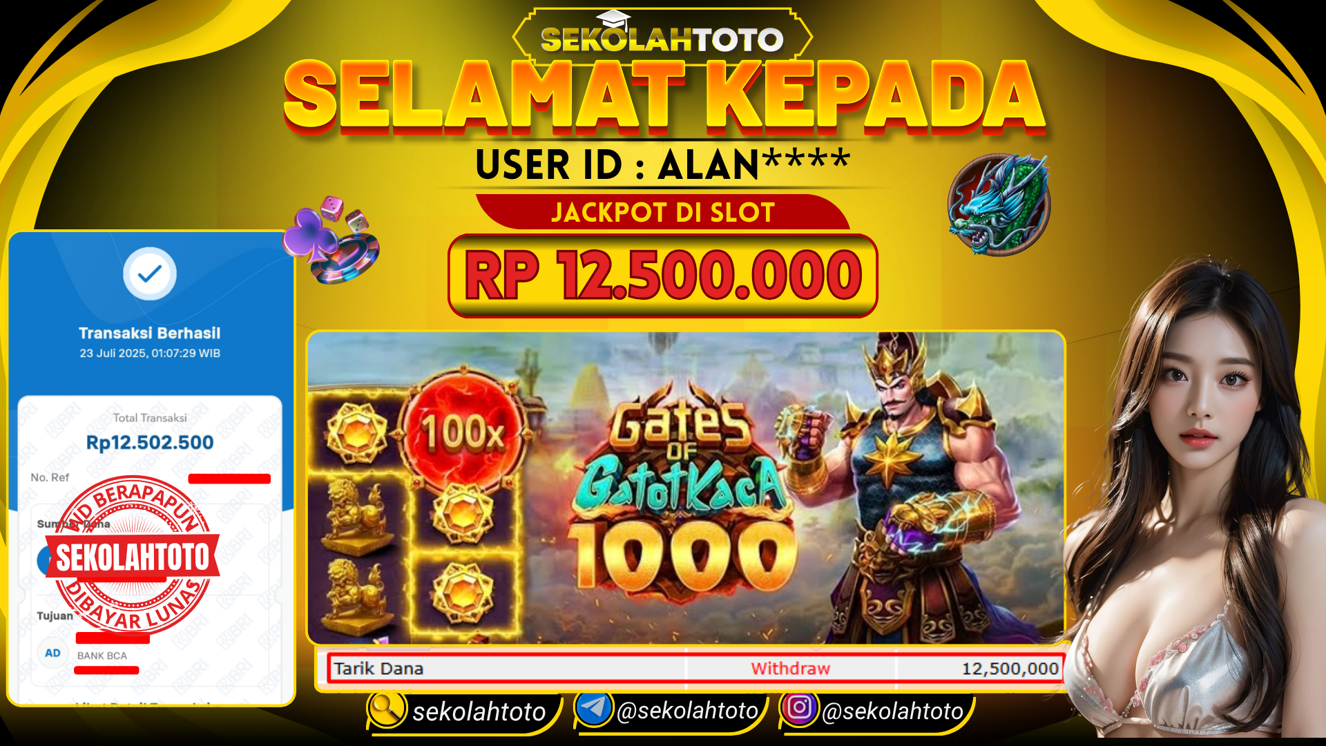BUKTI PEMBAYARAN JACKPOT PRAGMATIC PLAY 23 Juli 2025 Posted by Sekolah Toto GATES OF GATOT KACA 1000 RABU , 23 JULI 2025 RP 12,500,000,- Selamat Kepada Pemenang. Salam JP Updated: 23 Juli 2025 at 08:35 ◀ BUKTI PEMBAYARAN JACKPOT PG SOFT BUKTI PEMBAYARAN JACKPOT PRAGMATIC PLAY ▶