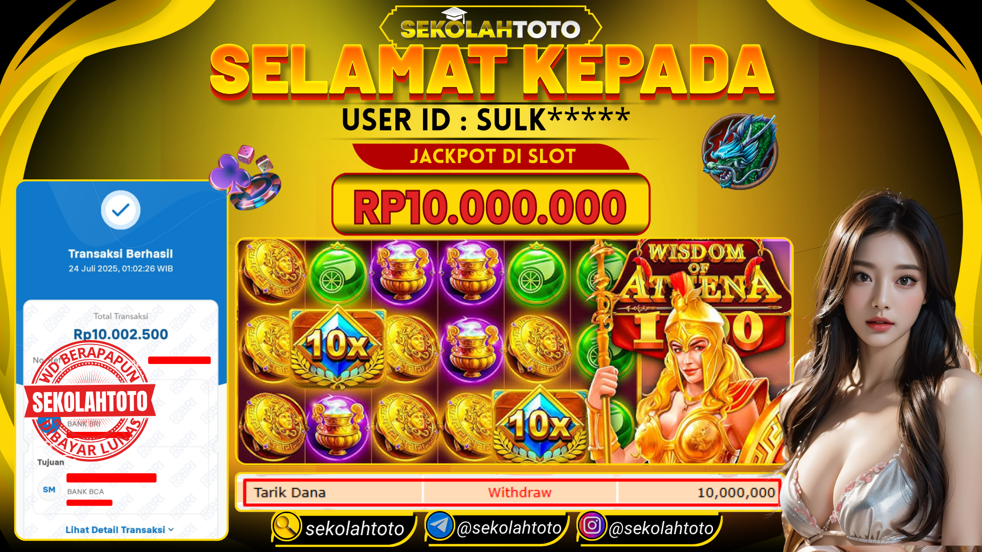 BUKTI PEMBAYARAN JACKPOT PRAGMATIC PLAY 24 Juli 2025 Posted by Sekolah Toto WISDOM OF ATHENA 1000 KAMIS , 24 JULI 2025 RP 10,000,000,- Selamat Kepada Pemenang. Salam JP Updated: 24 Juli 2025 at 02:53 ◀ Prediksi Togel Toto Macau Hari Ini BUKTI PEMBAYARAN JACKPOT PRAGMATIC PLAY ▶