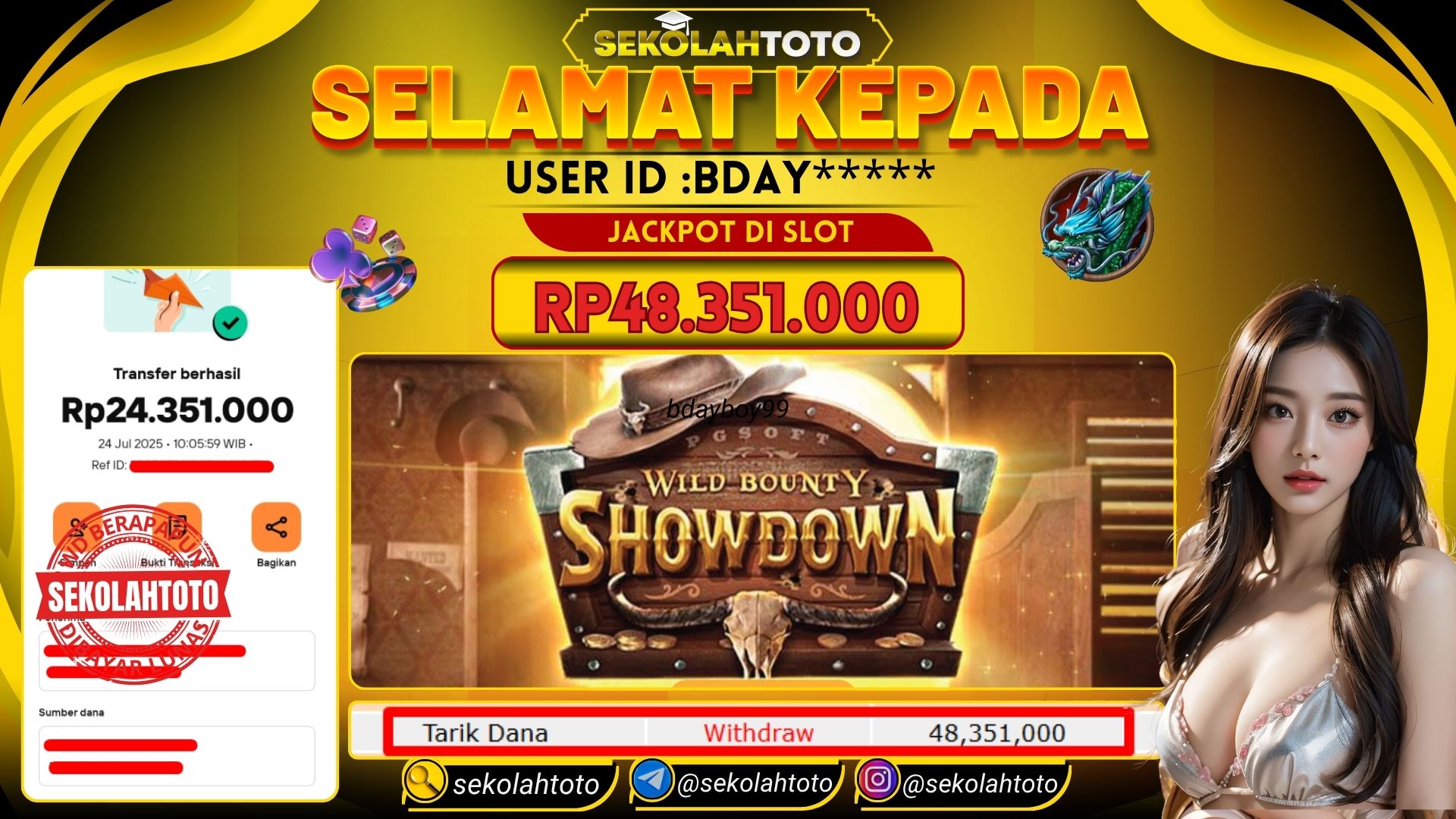 BUKTI PEMBAYARAN JACKPOT PRAGMATIC PLAY 24 Juli 2025 Posted by Sekolah Toto WILD BOUNTY SHOWDOWN KAMIS , 24 JULI 2025 RP 48,351,000,- Selamat Kepada Pemenang. Salam JP Updated: 24 Juli 2025 at 10:45 ◀ BUKTI PEMBAYARAN JACKPOT PRAGMATIC PLAY BUKTI PEMBAYARAN JACKPOT PRAGMATIC PLAY ▶
