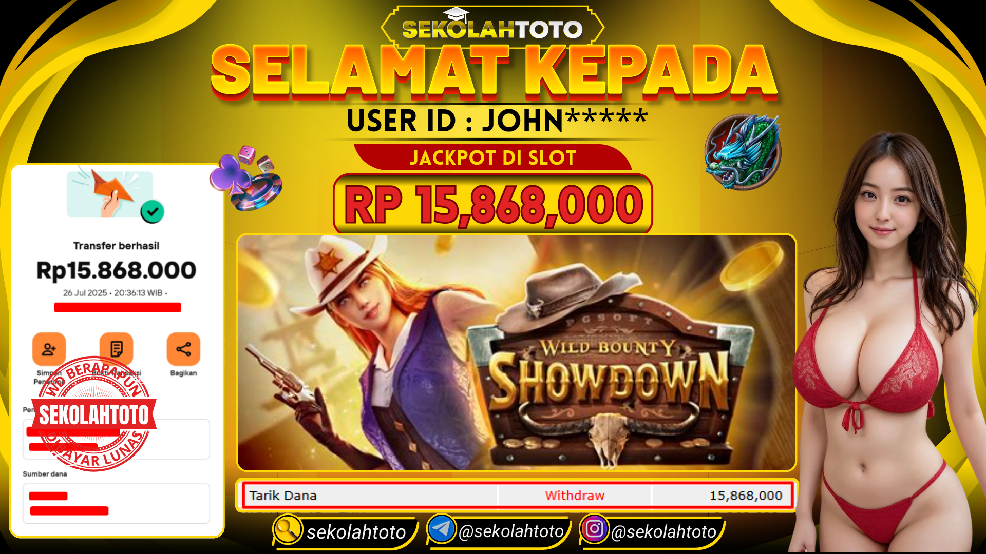 BUKTI PEMBAYARAN JACKPOT PG SOFT 26 Juli 2025 Posted by Sekolah Toto WILD BOUNTY SHOWDOWN SABTU , 26 JULI 2025 RP 15,868,000,- Selamat Kepada Pemenang. Salam JP Updated: 26 Juli 2025 at 21:10 ◀ BUKTI PEMBAYARAN JACKPOT PRAGMATIC PLAY Prediksi Togel Bullseye Pools Hari Ini ▶