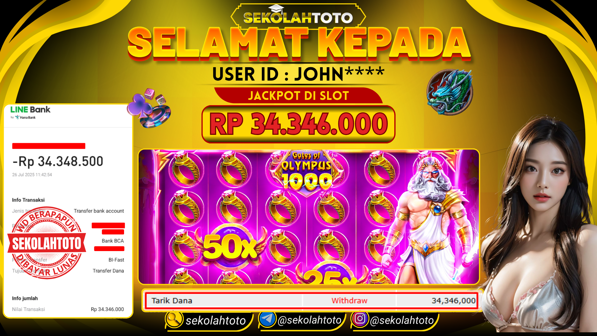 BUKTI PEMBAYARAN JACKPOT PRAGMATIC PLAY 26 Juli 2025 Posted by Sekolah Toto GATES OF OLYMPUS 1000 SABTU , 26 JULI 2025 RP 34,346,000,- Selamat Kepada Pemenang. Salam JP Updated: 26 Juli 2025 at 14:14 ◀ BUKTI PEMBAYARAN JACKPOT PG SOFT BUKTI PEMBAYARAN JACKPOT PG SOFT ▶