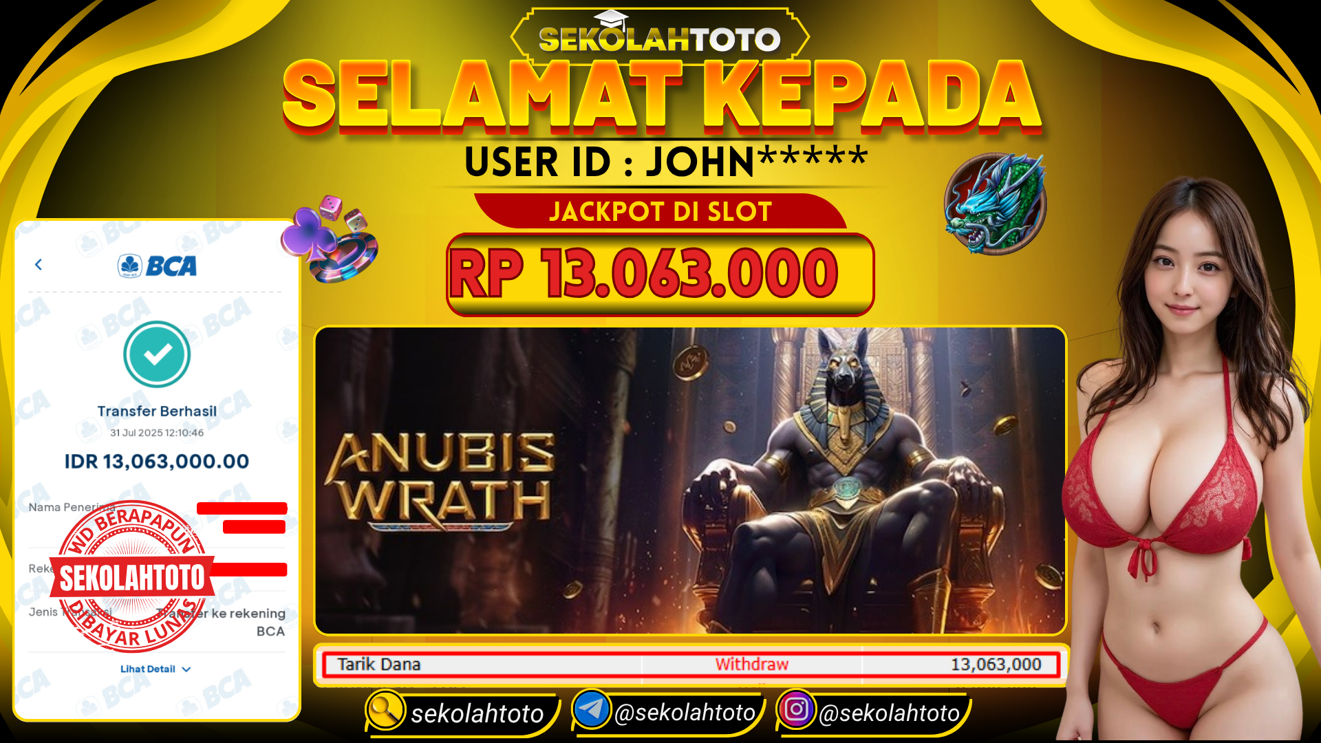 BUKTI PEMBAYARAN JACKPOT PG SOFT 31 Juli 2025 Posted by Sekolah Toto ANUBIS WRATH KAMIS , 31 JULI 2025 RP 13.063.000,- Selamat Kepada Pemenang. Salam JP Updated: 31 Juli 2025 at 18:29 ◀ BUKTI PEMBAYARAN JACKPOT PG SOFT BUKTI PEMBAYARAN JACKPOT PRAGMATIC PLAY ▶