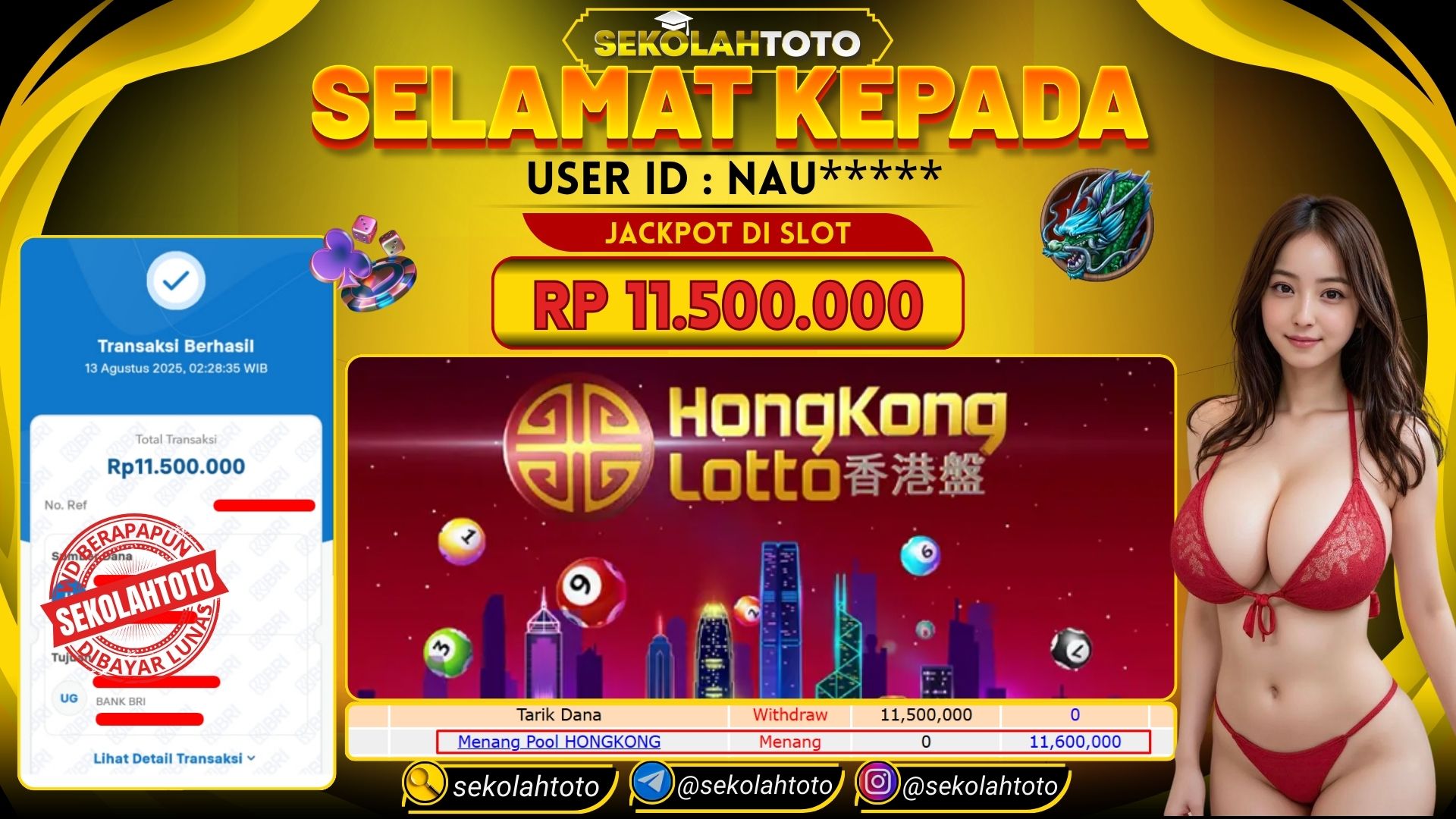 BUKTI PEMBAYARAN JACKPOT TOGEL 13 Agustus 2025 Posted by Sekolah Toto HONGKONG LOTTO RABU, 13 AGUSTUS 2025 RP 11,500,000,- Selamat Kepada Pemenang. Salam JP Updated: 13 Agustus 2025 at 04:04 ◀ BUKTI PEMBAYARAN JACKPOT PG SOFT BUKTI PEMBAYARAN JACKPOT PRAGMATIC PLAY ▶