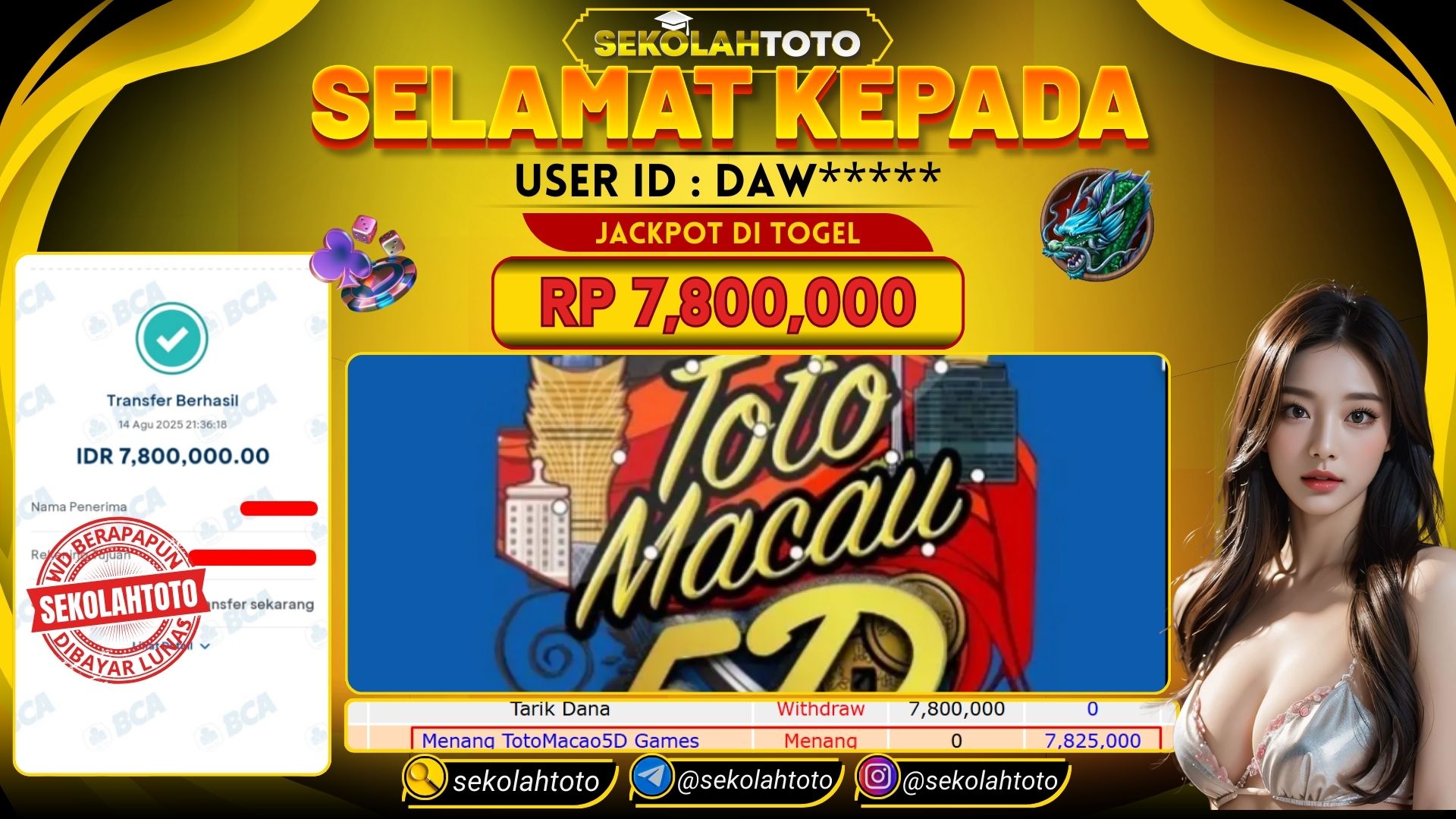 BUKTI PEMBAYARAN JACKPOT TOGEL 14 Agustus 2025 Posted by Sekolah Toto TOTO MACAU 5D KAMIS, 14 AGUSTUS 2025 RP 7,800,000,- Selamat Kepada Pemenang. Salam JP Updated: 14 Agustus 2025 at 22:03 ◀ BUKTI PEMBAYARAN JACKPOT PRACMATIC PLAY Prediksi Togel Bullseye Pools Hari Ini ▶