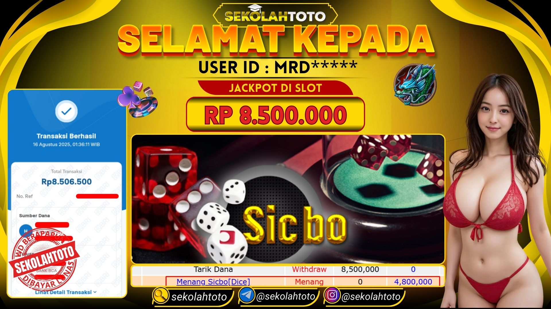 BUKTI PEMBAYARAN JACKPOT LIVE GAMES 16 Agustus 2025 Posted by Sekolah Toto SICBO DICE SABTU, 16 AGUSTUS 2025 RP 8,500,000,- Selamat Kepada Pemenang. Salam JP Updated: 16 Agustus 2025 at 03:28 ◀ BUKTI PEMBAYARAN JACKPOT PGSOFT BUKTI PEMBAYARAN JACKPOT PRAGMATIC PLAY ▶