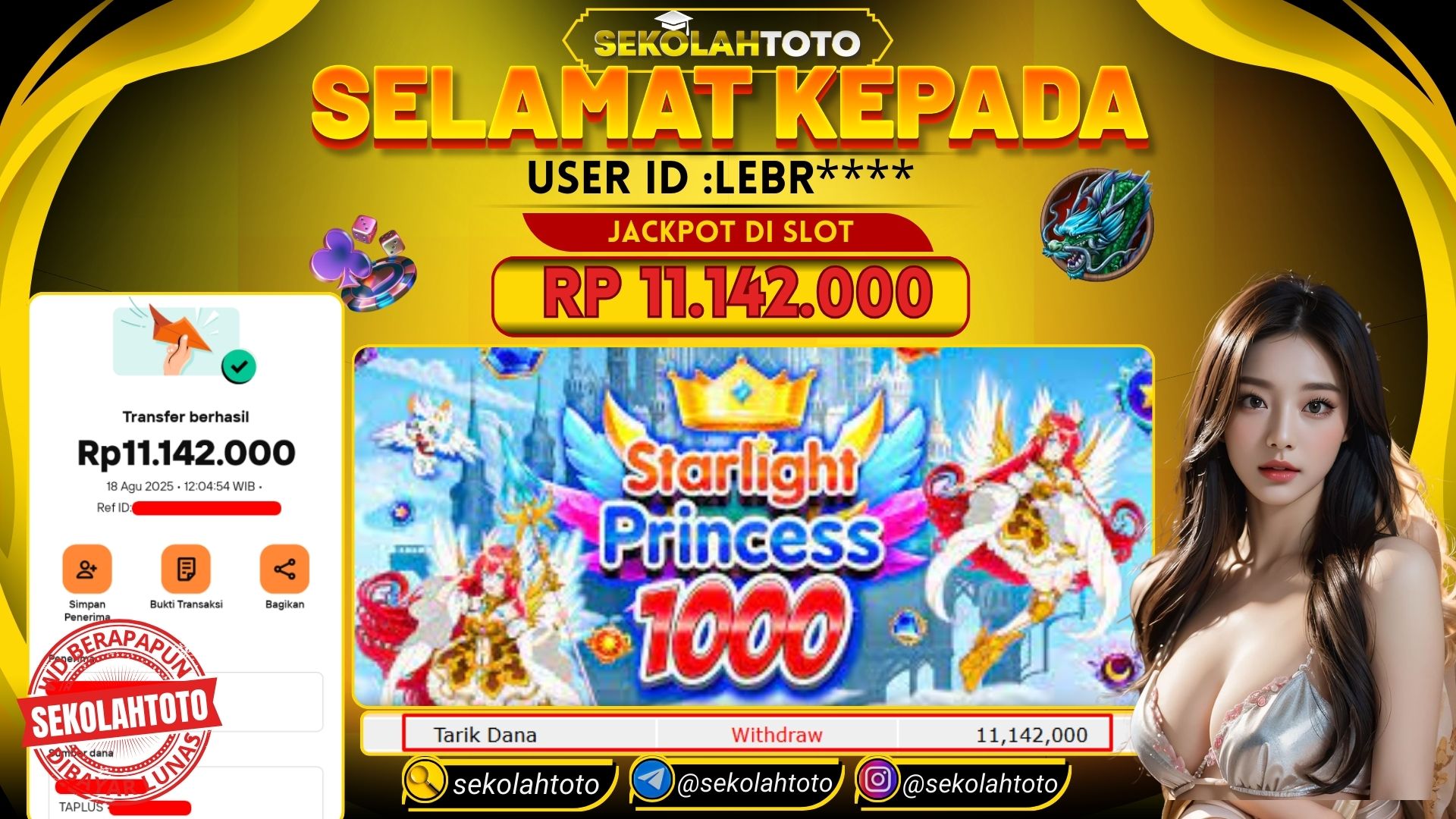 BUKTI PEMBAYARAN JACKPOT PRAGMATIC PLAY 18 Agustus 2025 Posted by Sekolah Toto STARLIGHT PRINCESS 1000 SENIN, 18 AGUSTUS 2025 RP 11,142,000,- Selamat Kepada Pemenang. Salam JP Updated: 18 Agustus 2025 at 13:22 ◀ Prediksi Togel Toto Macau Hari Ini BUKTI PEMBAYARAN JACKPOT PG SOFT ▶