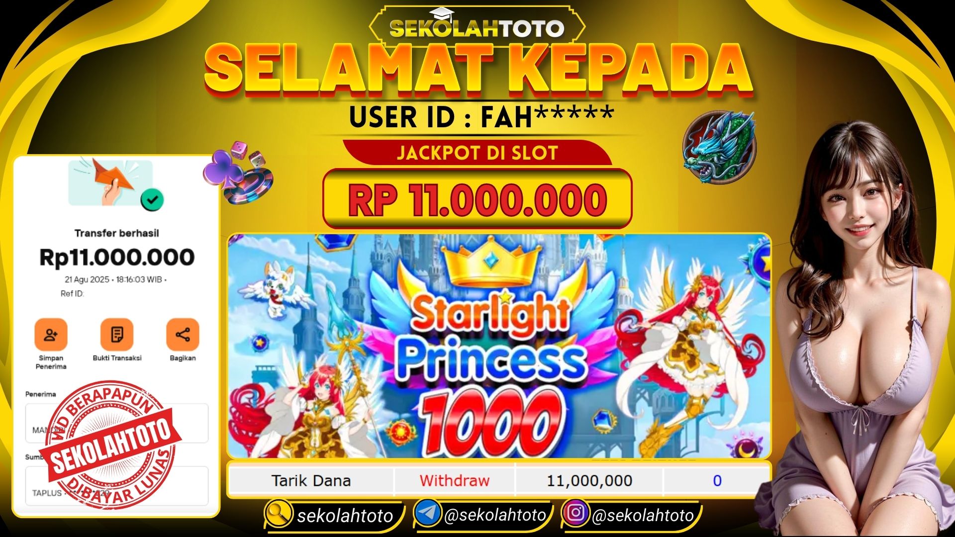 BUKTI PEMBAYARAN JACKPOT PRAGMATIC PLAY 21 Agustus 2025 Posted by Sekolah Toto STARLIGHT PRINCESS 1000 KAMIS , 21 AGUSTUS 2025 RP 11,000,000,- Selamat Kepada Pemenang. Salam JP Updated: 21 Agustus 2025 at 18:39 ◀ BUKTI PEMBAYARAN JACKPOT TOTO MACAU BUKTI PEMBAYARAN JACKPOT PRAGMATIC PLAY ▶