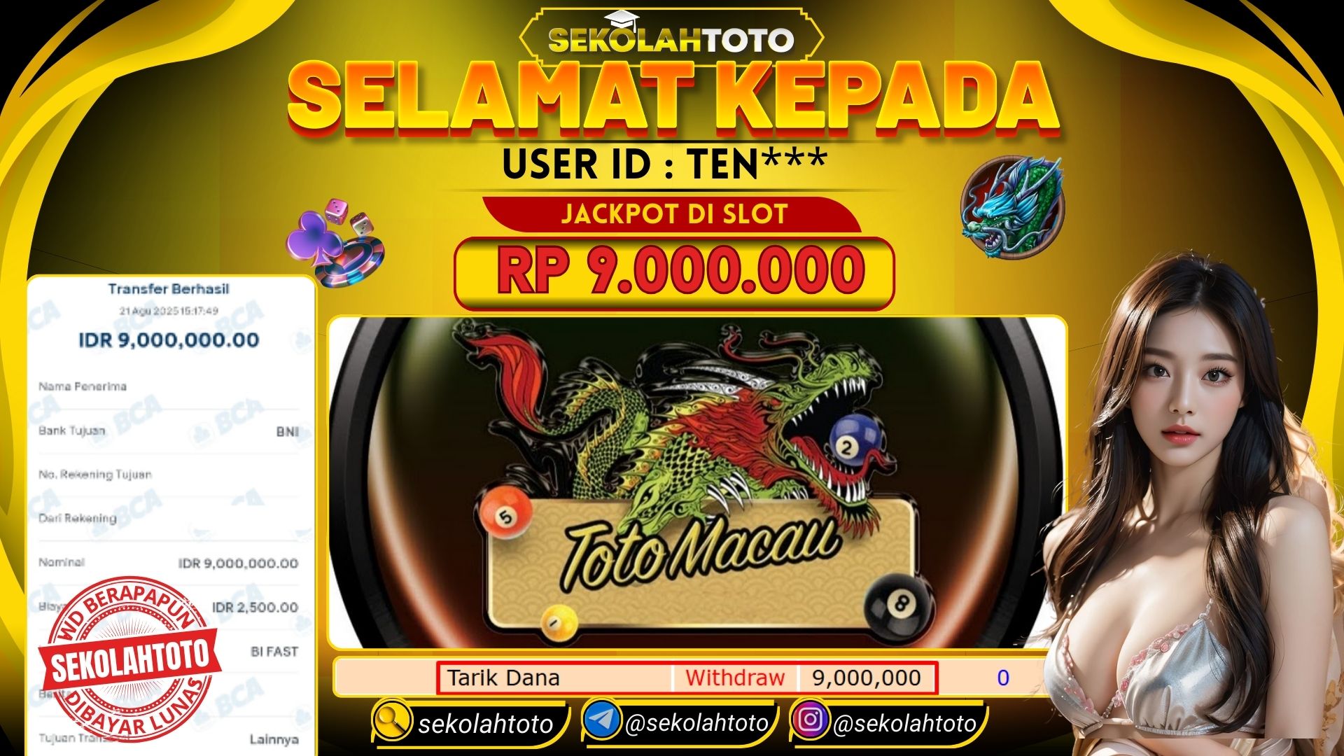 BUKTI PEMBAYARAN JACKPOT TOTO MACAU 21 Agustus 2025 Posted by Sekolah Toto TOTO MACAU 4D KAMIS, 21 AGUSTUS 2025 RP 9,000,000,- Selamat Kepada Pemenang. Salam JP Updated: 21 Agustus 2025 at 15:46 ◀ BUKTI PEMBAYARAN JACKPOT PG SOFT BUKTI PEMBAYARAN JACKPOT TOTO MACAU ▶