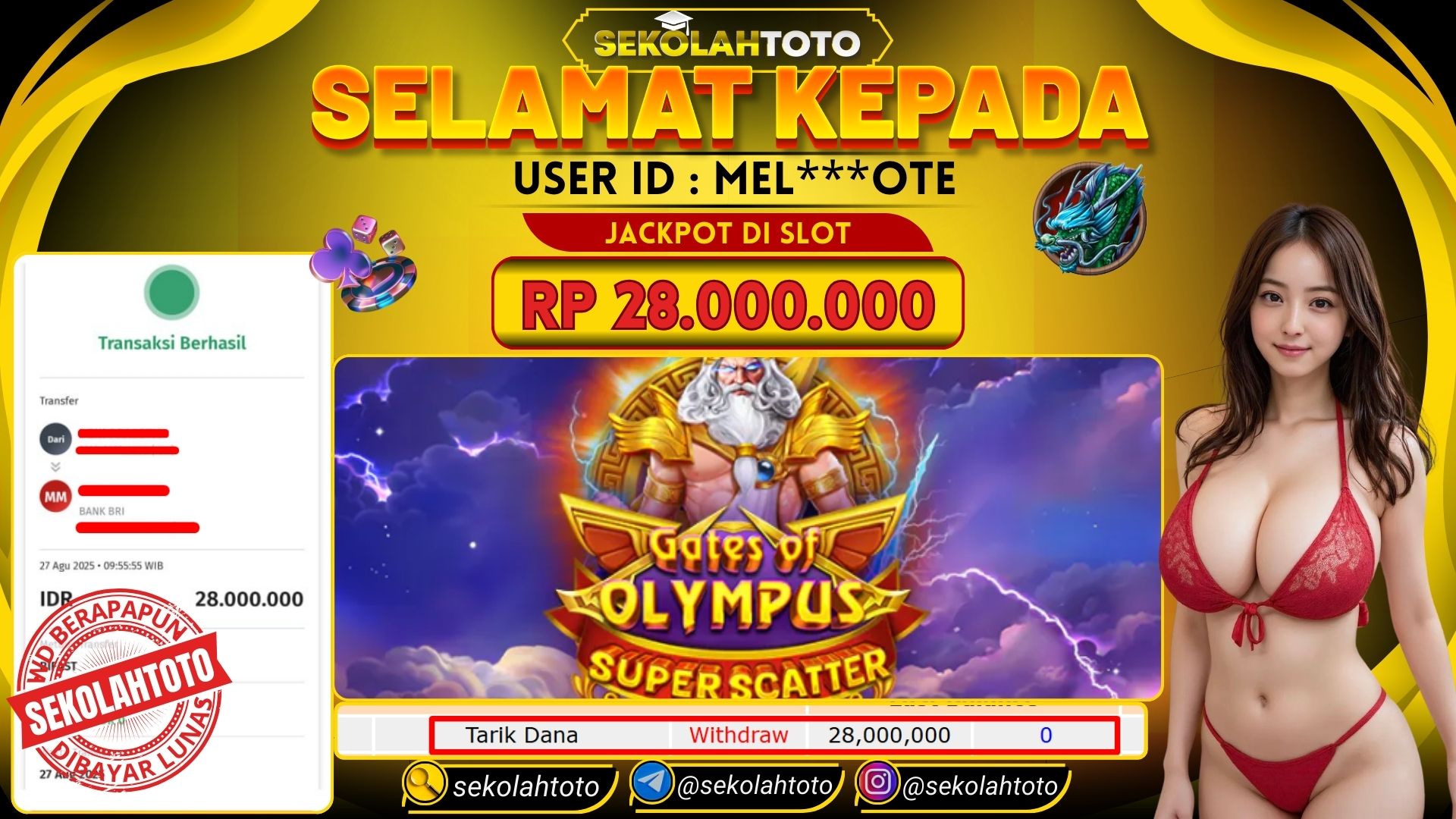BUKTI PEMBAYARAN JACKPOT PRAGMATIC PLAY 27 Agustus 2025 Posted by Sekolah Toto GATES OF OLYMPUS SUPER SCATTER RABU , 27 AGUSTUS 2025 RP 28,000,000,- Selamat Kepada Pemenang. Salam JP Updated: 27 Agustus 2025 at 10:14 ◀ BUKTI PEMBAYARAN JACKPOT PGSOFT BUKTI PEMBAYARAN JACKPOT PRAGMATIC PLAY ▶