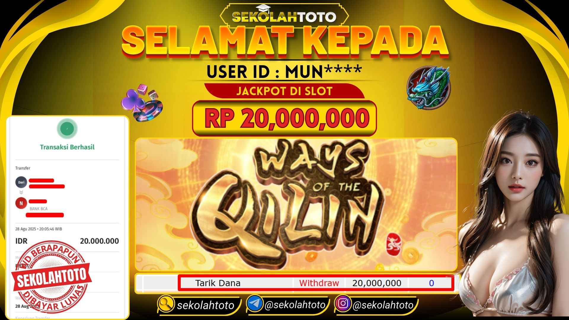 BUKTI PEMBAYARAN JACKPOT PG SOFT 28 Agustus 2025 Posted by Sekolah Toto WAYS OF THE QILIN KAMIS , 28 AGUSTUS 2025 RP 20,000,000,- Selamat Kepada Pemenang Salam JP Updated: 28 Agustus 2025 at 20:25 ◀ BUKTI PEMBAYARAN JACKPOT PRAGMATIC PLAY Prediksi Togel Bullseye Pools Hari Ini ▶