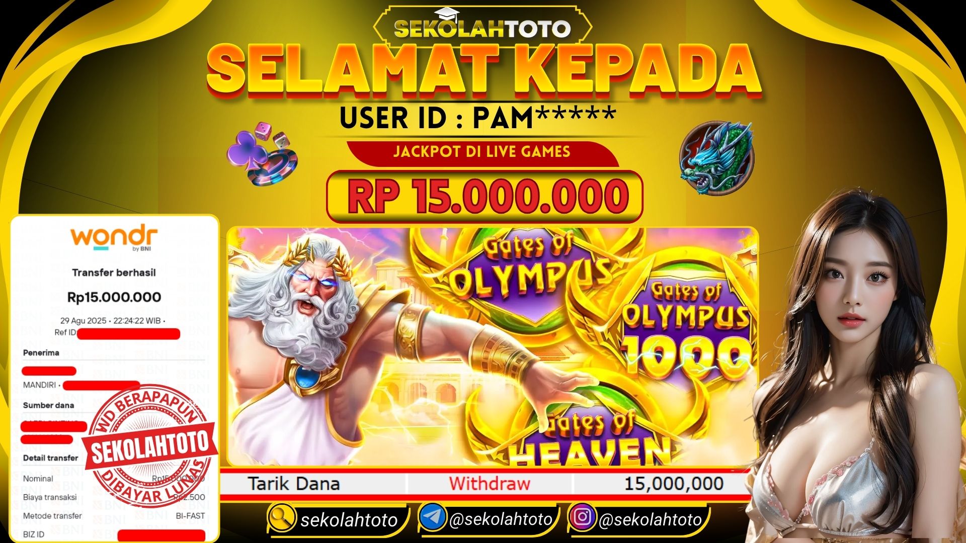 BUKTI PEMBAYARAN JACKPOT PRACMATIC PLAY 30 Agustus 2025 Posted by Sekolah Toto GATES OLYMPUS 1000 SABTU , 30 AGUSTUS 2025 RP 15,000,000,- Selamat Kepada Pemenang. Salam JP Updated: 30 Agustus 2025 at 06:51 ◀ Prediksi Togel Toto Macau Hari Ini BUKTI PEMBAYARAN JACKPOT PGSOFT ▶