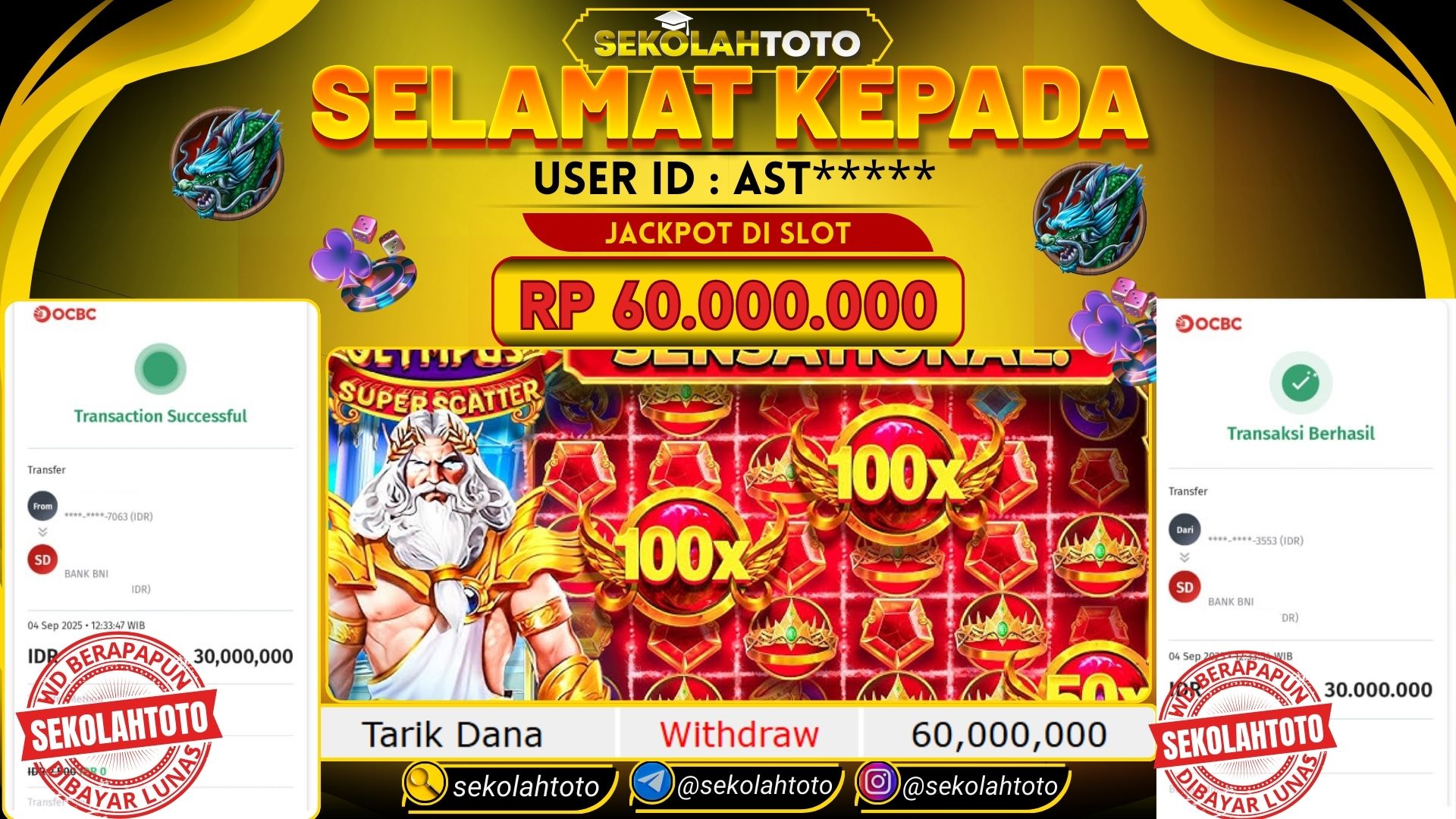 BUKTI PEMBAYARAN JACKPOT PRGAMATIC PLAY 4 September 2025 Posted by Sekolah Toto Gates Of Olympus Super Scatter KAMIS , 4 SEPTEMBER 2025 RP 60,000,000,- Selamat Kepada Pemenang. Salam JP Updated: 4 September 2025 at 13:08 ◀ BUKTI PEMBAYARAN JACKPOT PG SOFT BUKTI PEMBAYARAN JACKPOT PRGAMATIC PLAY ▶