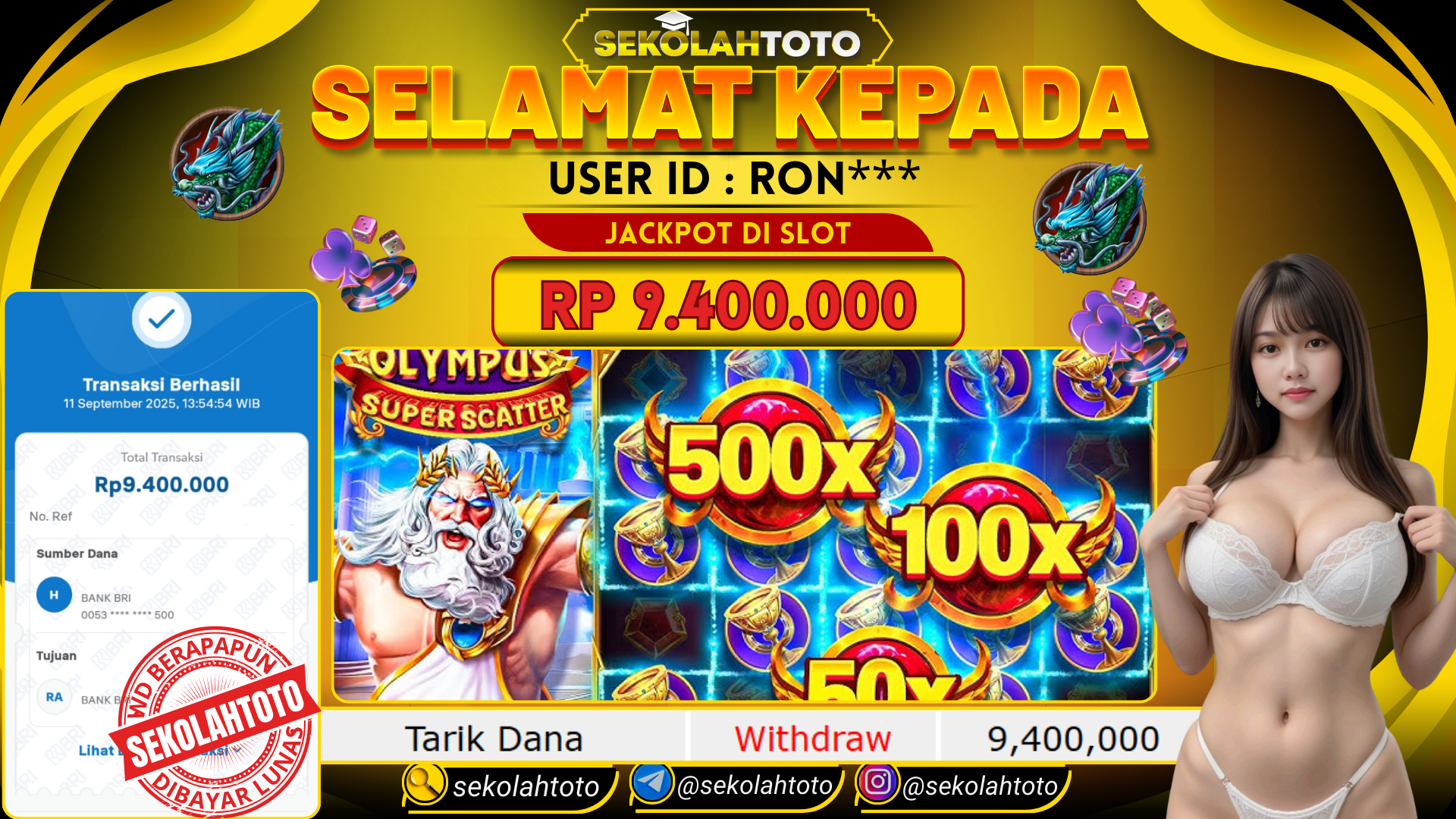 BUKTI PEMBAYARAN JACKPOT PRAGMATIC PLAY 11 September 2025 Posted by Sekolah Toto Gates Of Olympus Super Scatter KAMIS , 11 SEPTEMBER 2025 RP 9,400,000,- Selamat Kepada Pemenang. Salam JP Updated: 11 September 2025 at 14:03 ◀ BUKTI PEMBAYARAN JACKPOT PRAGMATIC PLAY BUKTI PEMBAYARAN JACKPOT PG SOFT ▶