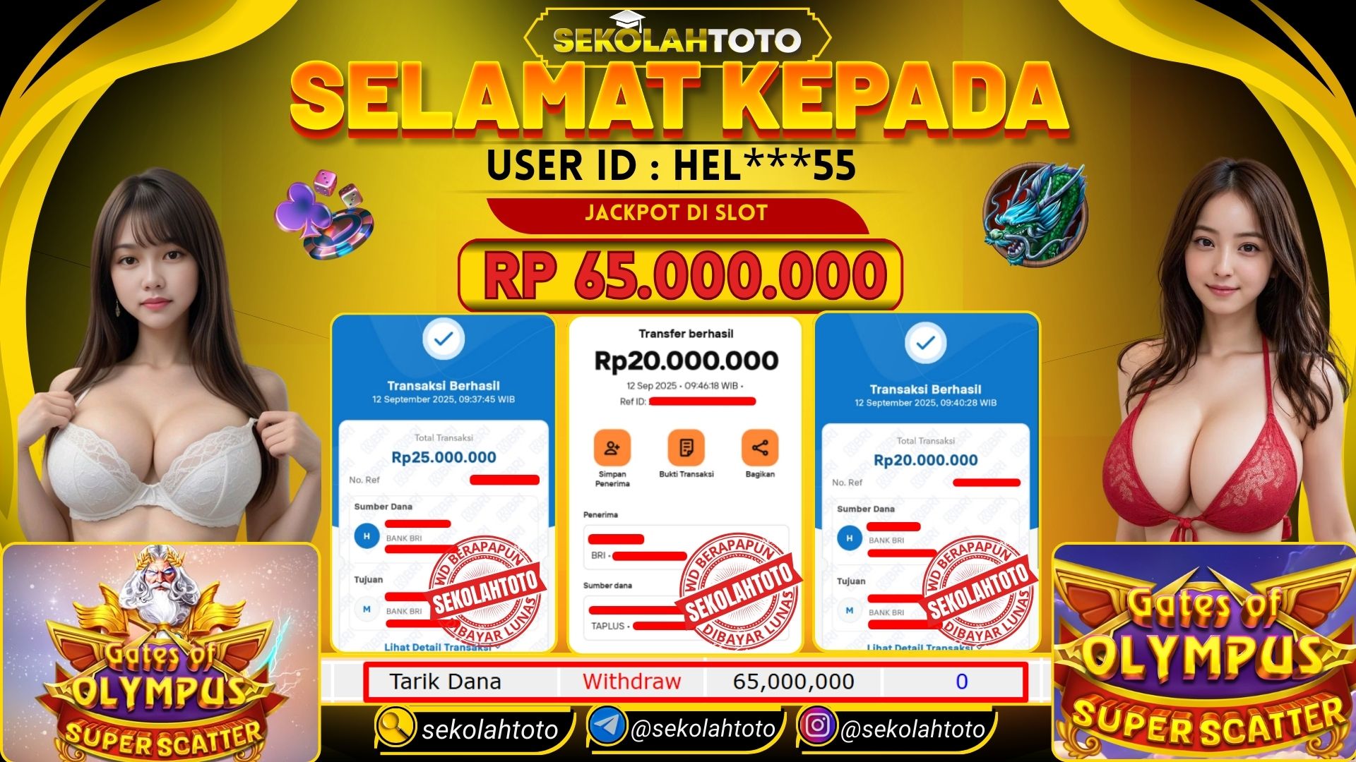 BUKTI PEMBAYARAN JACKPOT PRAGMATIC PLAY 12 September 2025 Posted by Sekolah Toto GATES OF OLYMPUS SUPER SCATTER JUMAT , 12 SEPTEMBER 2025 RP 65,000,000,- Selamat Kepada Pemenang. Salam JP Updated: 12 September 2025 at 10:03 ◀ BUKTI PEMBAYARAN JACKPOT PRAGMATIC PLAY BUKTI PEMBAYARAN JACKPOT PRAGMATIC LIVE DEALER ▶