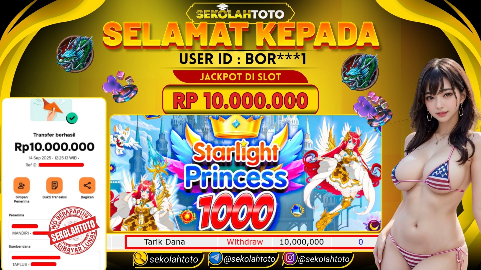 BUKTI PEMBAYARAN JACKPOT PRGAMATIC PLAY 14 September 2025 Posted by Sekolah Toto STARLIGHT PRINCESS 1000 MINGGU 14 SEPTEMBER 2025 RP 10,000,000,- Selamat Kepada Pemenang. Salam JP Updated: 14 September 2025 at 12:45 ◀ BUKTI PEMBAYARAN JACKPOT PG SOFT BUKTI PEMBAYARAN JACKPOT PRGAMATIC PLAY ▶