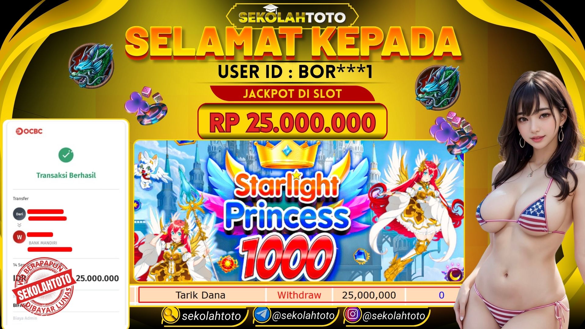 BUKTI PEMBAYARAN JACKPOT PRGAMATIC PLAY 14 September 2025 Posted by Sekolah Toto STARLIGHT PRINCESS 1000 MINGGU 14 SEPTEMBER 2025 RP 25,000,000,- Selamat Kepada Pemenang. Salam JP Updated: 14 September 2025 at 13:17 ◀ BUKTI PEMBAYARAN JACKPOT PRGAMATIC PLAY BUKTI PEMBAYARAN JACKPOT PG SOFT ▶