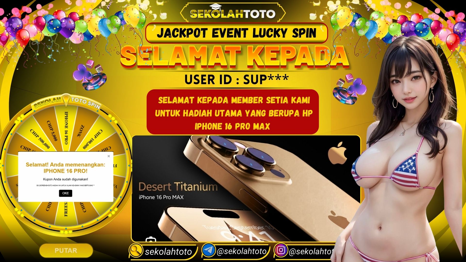BUKTI HADIAH KEMENANGAN EVENT LUCKY SPIN 15 September 2025 Posted by Sekolah Toto EVENT LUCKY SPIN SENIN, 15 SEPTEMBER 2025 HADIAH IPHONE 16 PRO MAX Selamat Kepada Pemenang. Updated: 15 September 2025 at 04:38 ◀ Prediksi Togel Toto Macau Hari Ini BUKTI PEMBAYARAN JACKPOT PRGAMATIC PLAY ▶