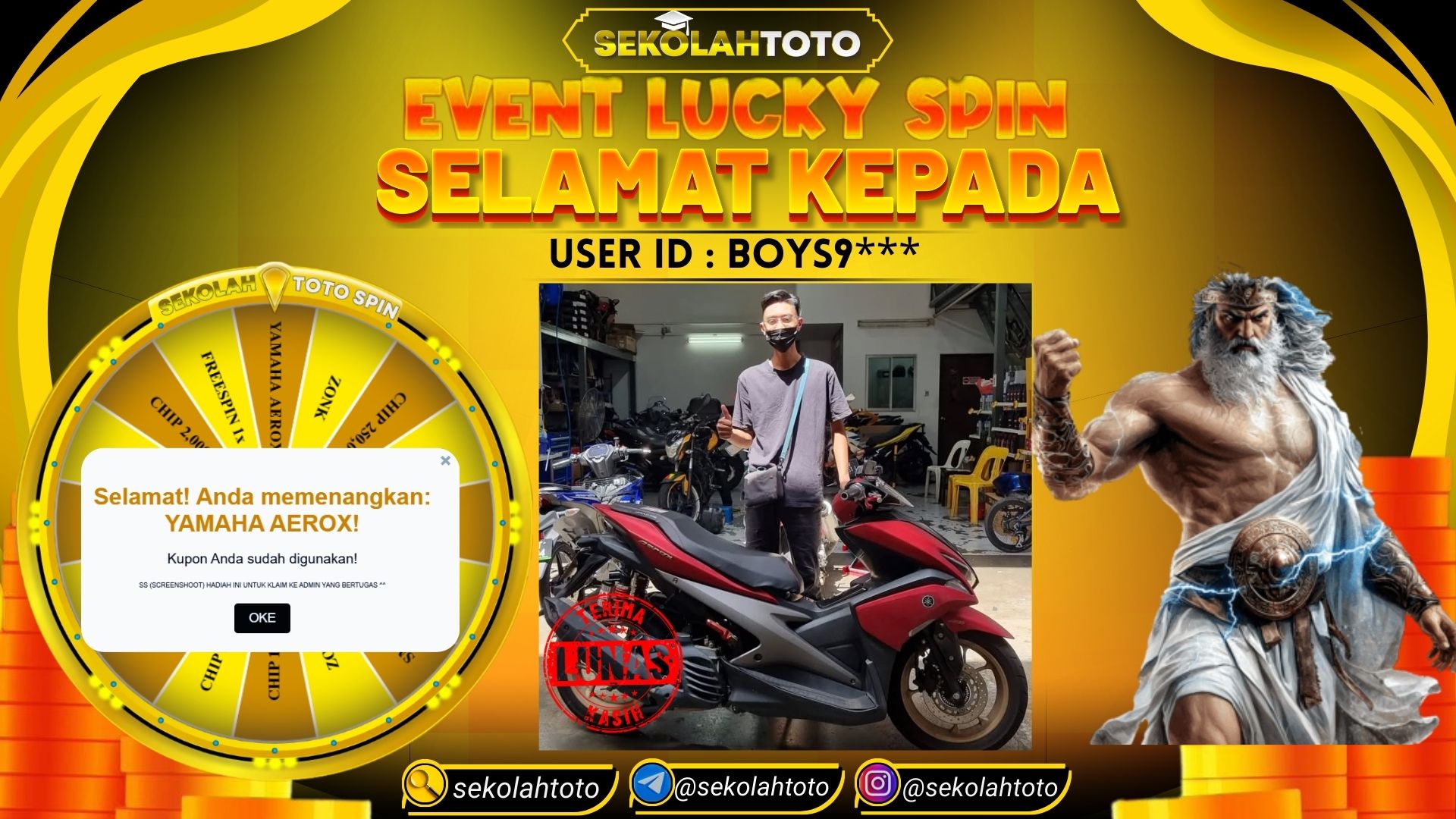 BUKTI HADIAH KEMENANGAN EVENT LUCKY SPIN 16 September 2025 Posted by Sekolah Toto EVENT LUCKY SPIN SELASA, 16 SEPTEMBER 2025 HADIAH YAHAMA AEROX Selamat Kepada Pemenang. Updated: 16 September 2025 at 15:43 ◀ BUKTI PEMBAYARAN JACKPOT IDNLIVE BUKTI PEMBAYARAN JACKPOT PRAGMATIC LIVE DEALER ▶