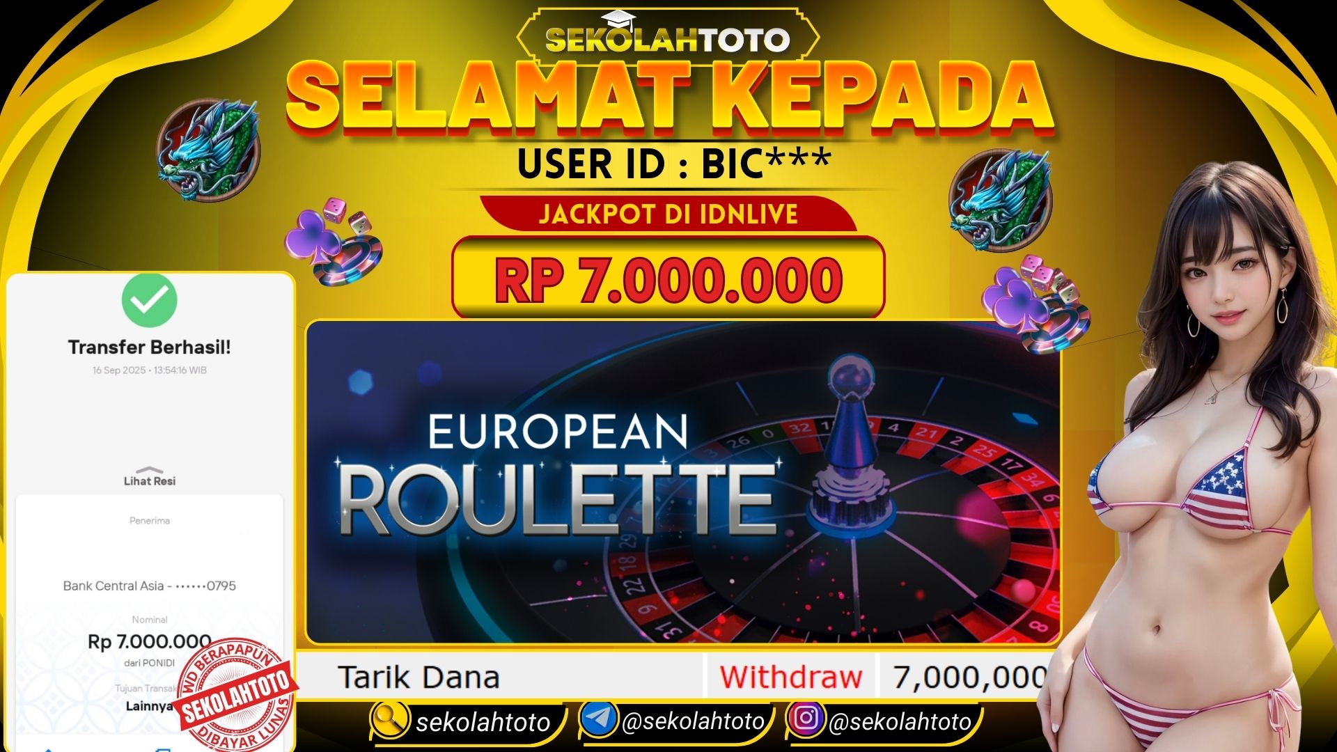 BUKTI PEMBAYARAN JACKPOT IDNLIVE 16 September 2025 Posted by Sekolah Toto Europe Roulette 1 SELASA 16 SEPTEMBER 2025 RP 7,000,000,- Selamat Kepada Pemenang. Salam JP Updated: 16 September 2025 at 14:03 ◀ BUKTI PEMBAYARAN JACKPOT PG SOFT BUKTI HADIAH KEMENANGAN EVENT LUCKY SPIN ▶