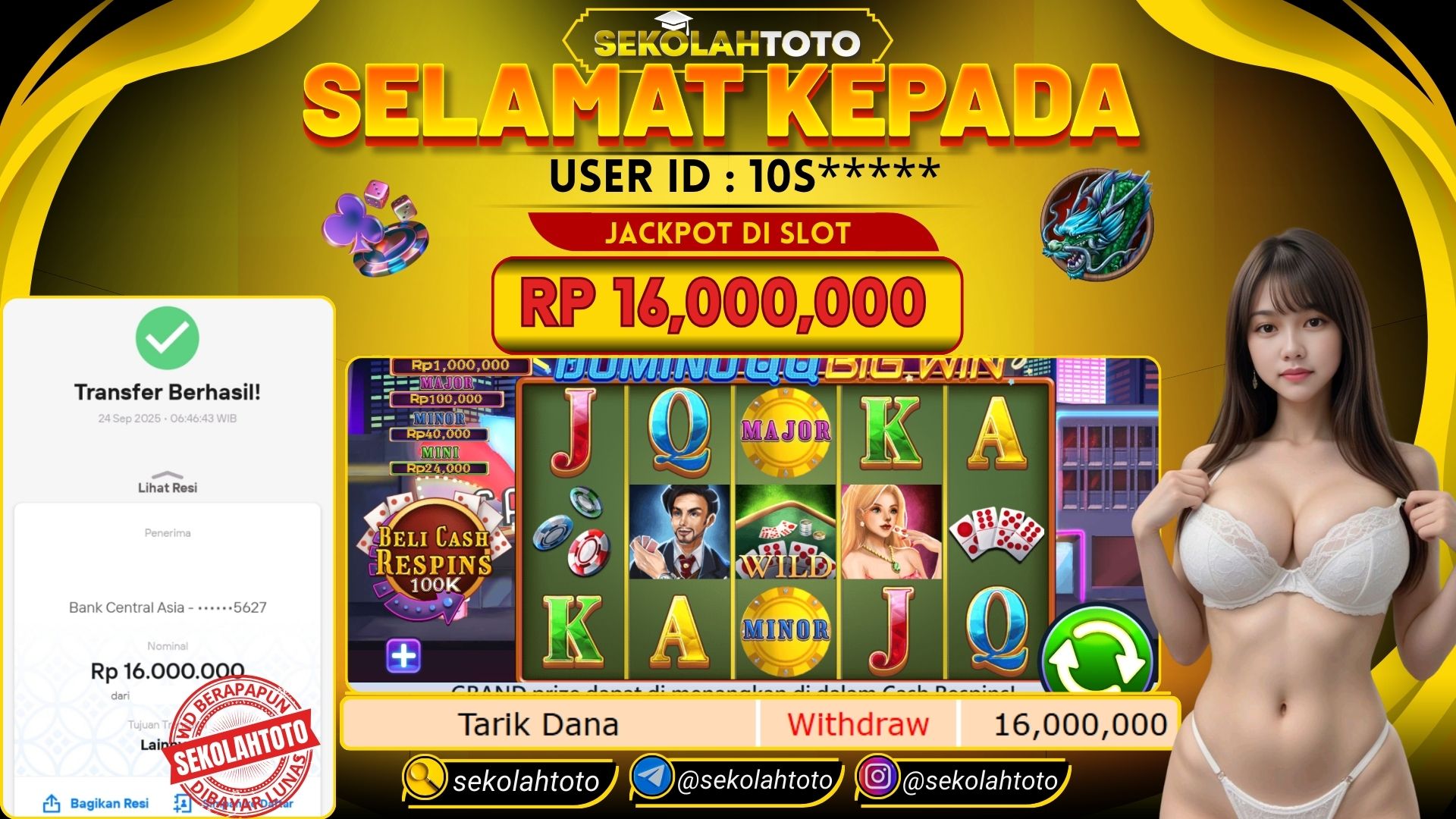 BUKTI PEMBAYARAN JACKPOT IDNSLOT 24 September 2025 Posted by Sekolah Toto DOMINO QQ BIG WIN RABU , 24 SEPTEMBER 2025 RP 16,000,000,- Selamat Kepada Pemenang. Salam JP Updated: 24 September 2025 at 07:18 ◀ Prediksi Togel Toto Macau Hari Ini BUKTI PEMBAYARAN JACKPOT PRAGMATIC PLAY ▶