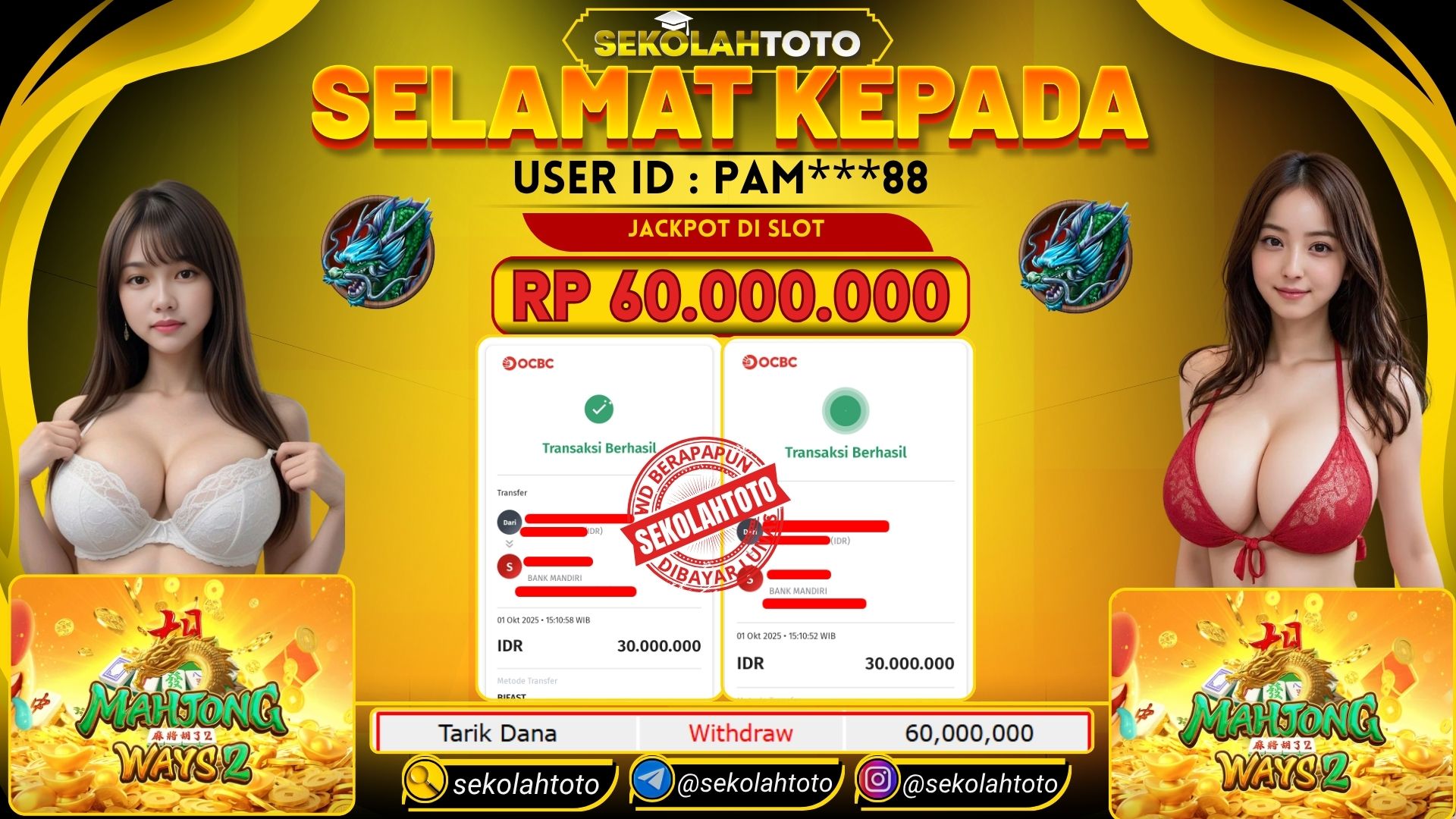 BUKTI PEMBAYARAN JACKPOT PG SOFT 1 Oktober 2025 Posted by Sekolah Toto MAHJONG WAYS 2 RABU , 1 OKTOBER 2025 RP 60,000,000,- Selamat Kepada Pemenang. Salam JP Updated: 1 Oktober 2025 at 16:05 ◀ BUKTI PEMBAYARAN JACKPOT PRAGMATIC PLAY Prediksi Togel Bullseye Pools Hari Ini ▶