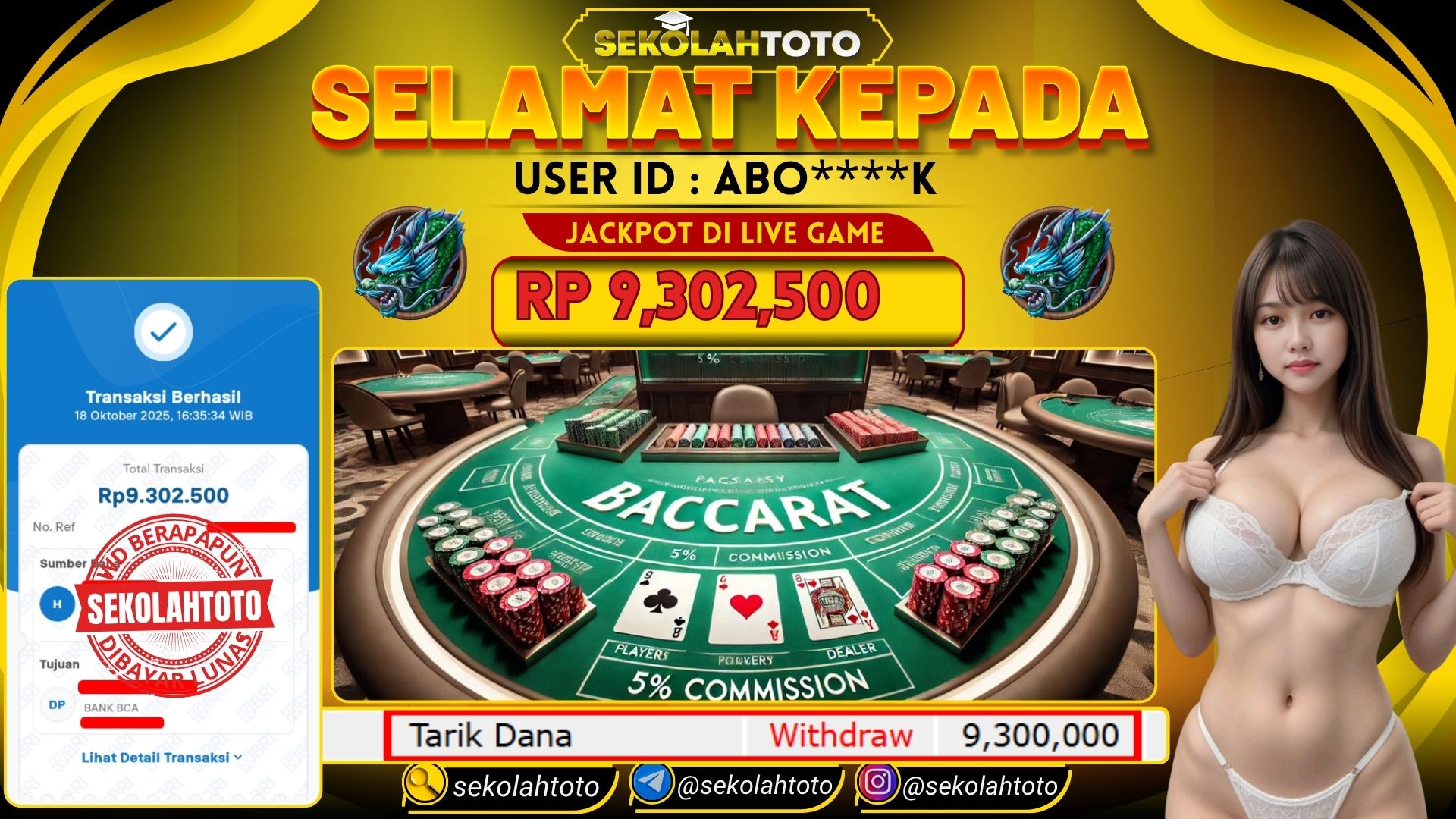 BUKTI PEMBAYARAN JACKPOT LIVE GAME 18 Oktober 2025 Posted by Sekolah Toto BACCARAT SABTU , 18 OKTOBER 2025 RP 9,302,500,- Selamat Kepada Pemenang. Salam JP Updated: 18 Oktober 2025 at 17:18 ◀ BUKTI PEMBAYARAN JACKPOT PRAGMATIC PLAY BUKTI PEMBAYARAN JACKPOT PRAGMATIC PLAY ▶