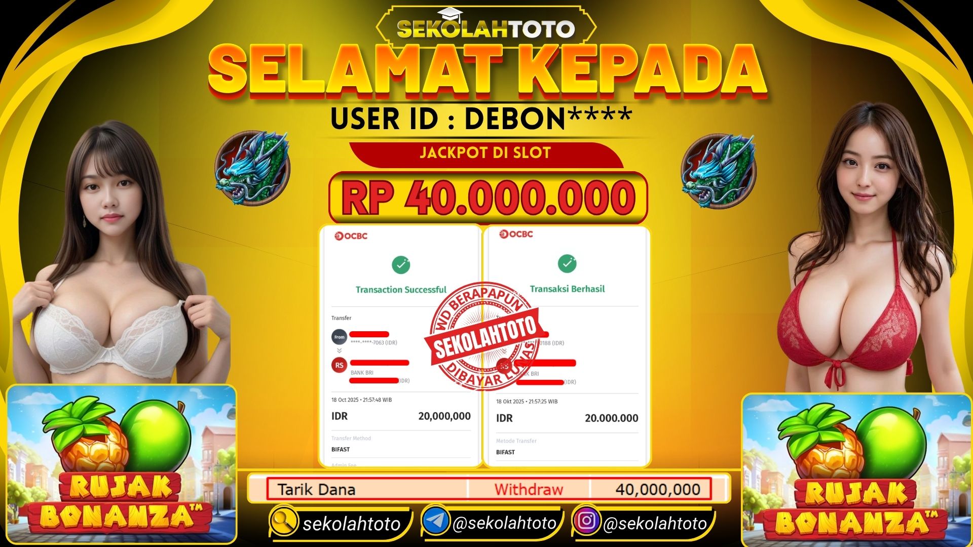 BUKTI PEMBAYARAN JACKPOT PRAGMATIC PLAY 18 Oktober 2025 Posted by Sekolah Toto RUJAK BONANZA SABTU , 18 OKTOBER 2025 RP 40,000,000,- Selamat Kepada Pemenang. Salam JP Updated: 18 Oktober 2025 at 22:11 ◀ BUKTI PEMBAYARAN JACKPOT LIVE GAME Prediksi Togel Bullseye Pools Hari Ini ▶