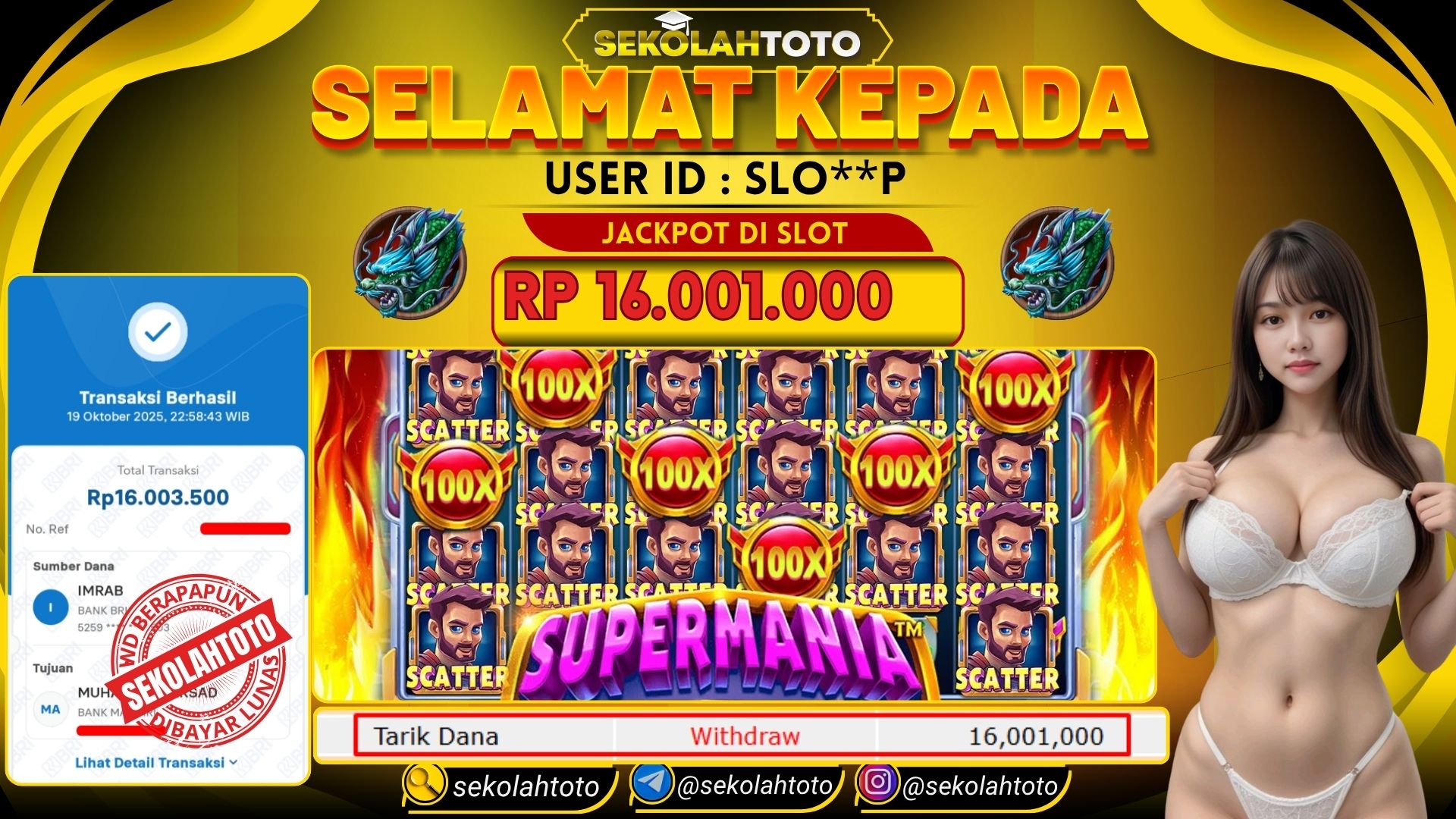 BUKTI PEMBAYARAN JACKPOT SLOT MANIA 19 Oktober 2025 Posted by Sekolah Toto SUPER MANIA MINGGU, 19 OKTOBER 2025 RP 16,001,000,- Selamat Kepada Pemenang. Salam JP Updated: 19 Oktober 2025 at 23:52 ◀ BUKTI PEMBAYARAN JACKPOT TOGEL BUKTI PEMBAYARAN JACKPOT PRAGMATIC PLAY ▶