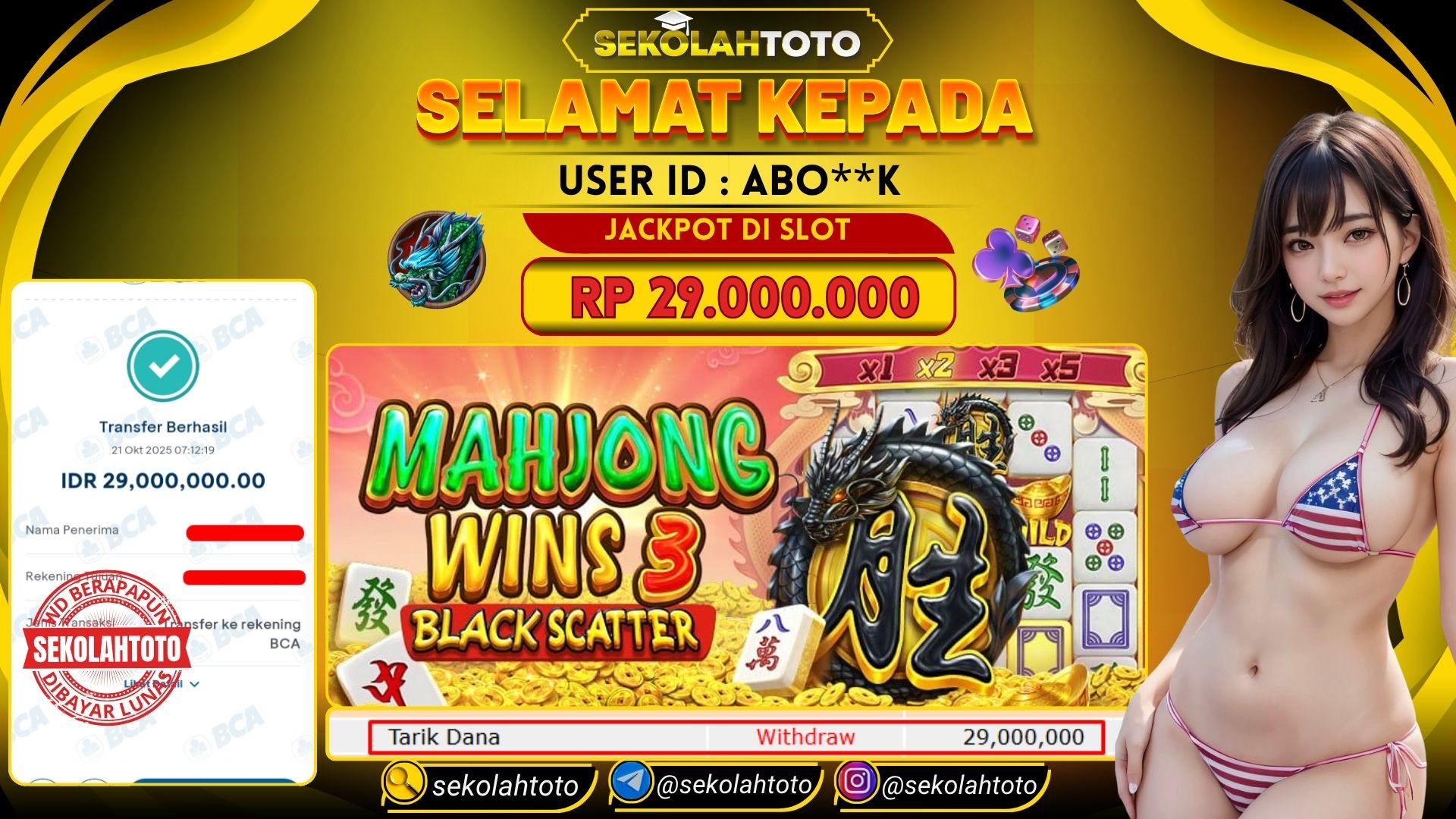 BUKTI PEMBAYARAN JACKPOT PRAGMATIC PLAY 21 Oktober 2025 Posted by Sekolah Toto MAHJONG WINS 3 SELASA, 21 OKTOBER 2025 RP 29,000,000,- Selamat Kepada Pemenang. Salam JP Updated: 21 Oktober 2025 at 08:06 ◀ BUKTI PEMBAYARAN JACKPOT PRAGMATIC PLAY BUKTI PEMBAYARAN JACKPOT PG SOFT ▶