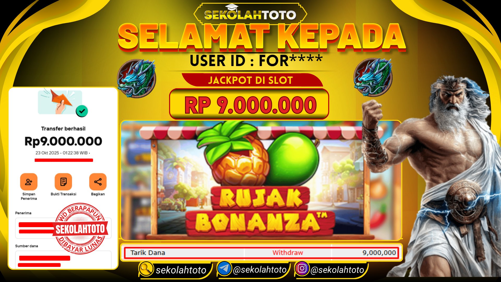 BUKTI PEMBAYARAN JACKPOT PRAGMATIC PLAY 23 Oktober 2025 Posted by Sekolah Toto RUJAK BONANZA KAMIS , 23 OKTOBER 2025 RP 9,000,000,- Selamat Kepada Pemenang. Salam JP Updated: 23 Oktober 2025 at 06:30 ◀ Prediksi Togel Toto Macau Hari Ini BUKTI PEMBAYARAN JACKPOT PRAGMATIC PLAY ▶