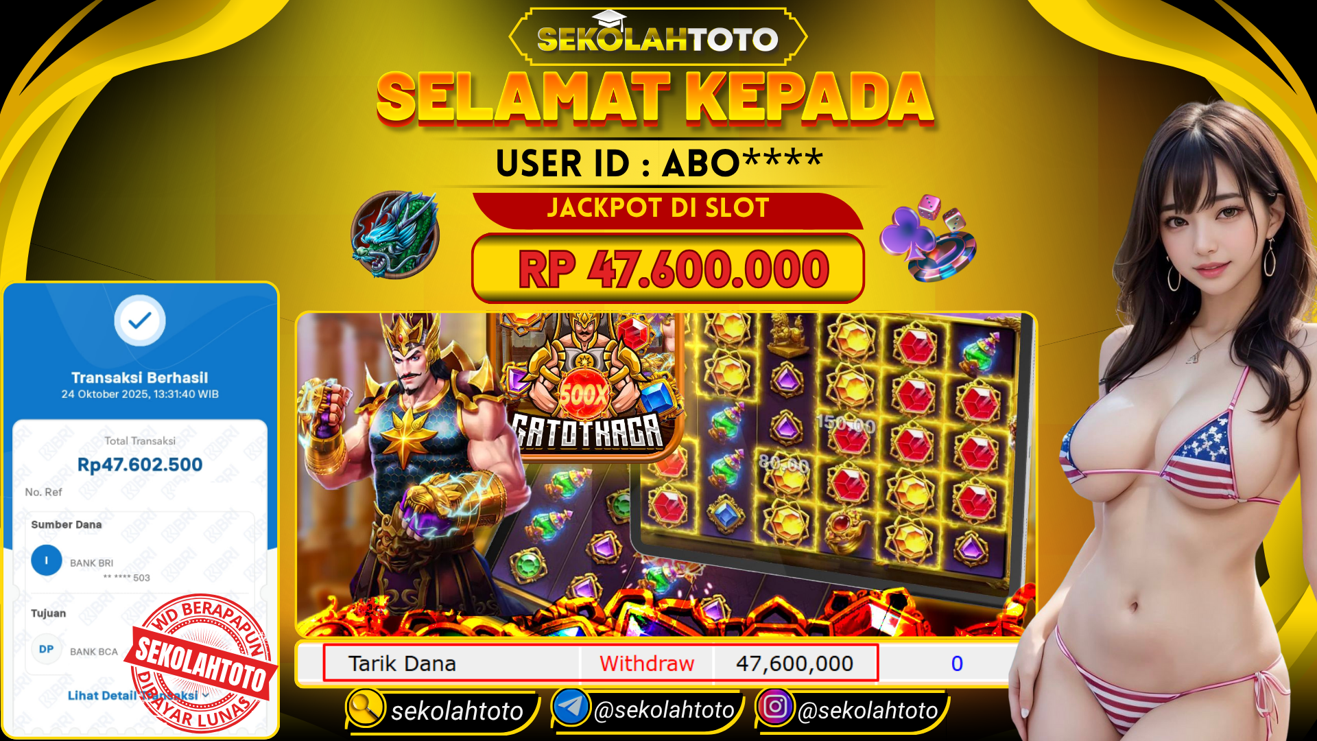 BUKTI PEMBAYARAN JACKPOT PRAGMATIC PLAY 24 Oktober 2025 Posted by Sekolah Toto GATES OF GATOT KACA 1000 JUMAT, 24 OKTOBER 2025 RP 47,600,000,- Selamat Kepada Pemenang. Salam JP Updated: 24 Oktober 2025 at 13:55 ◀ BUKTI PEMBAYARAN JACKPOT PRAGMATIC PLAY Prediksi Togel Bullseye Pools Hari Ini ▶