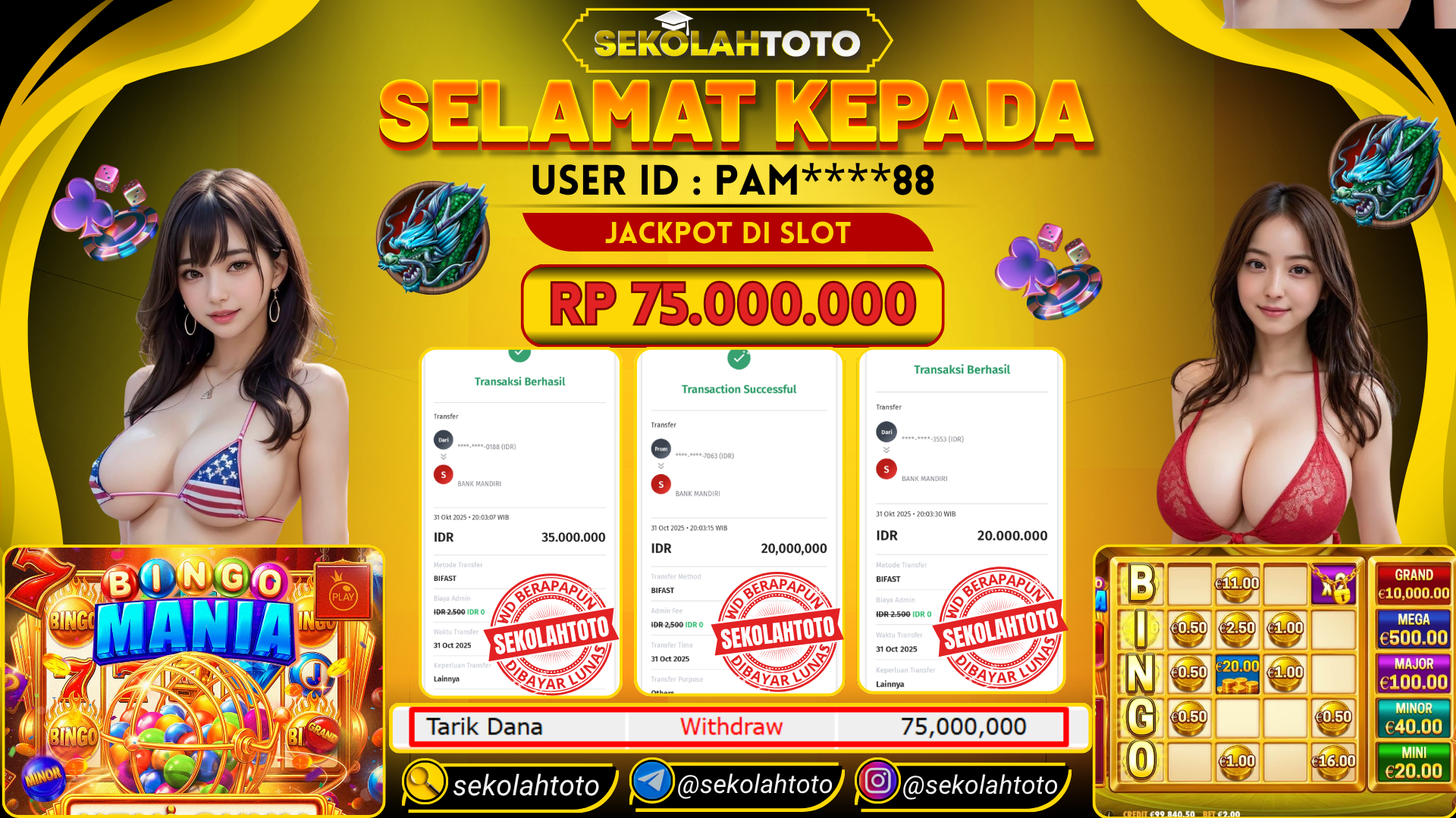 Perlu dikethui juga bahwa prediksi togel oregon03 diatas hanya untuk menfukung anda dalam bermain togel online di SEKOLAHTOTO agar permainan togel menjadi lebih menantang namun tetap dimainkan secara fair. Menjadikan SEKOLAHTOTO sebagai tempat betting togel online pilihan anda sangatlah direkomendasikan karena situs tersebut dapat memberikan keuntungan dibayar langsung tanpa potongan dengan cara mendaftarkan akun togel dan deposit 10rb rupiah untuk menjadi member didalamnya. Maka dari itu segara mainkan pasaran toto togel Oregon03 terlengkap hanya dengan bet 100 perak semua bettingan tanpa batasan dan besaran line togel online SEKOLAHTOTO.